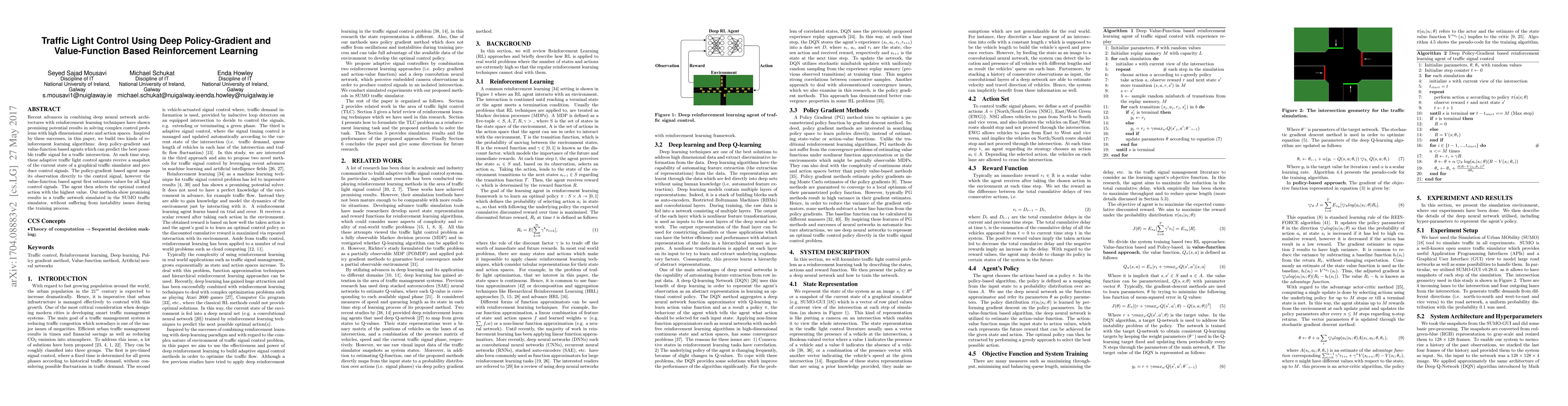This paper develops deep reinforcement learning algorithms—deep policy-gradient and value-function based agents—to optimize traffic light control in intersections. The agents adapt to the traffic simulator's state to produce optimal control signals, demonstrating stability and promising results in the SUMO traffic simulation environment.