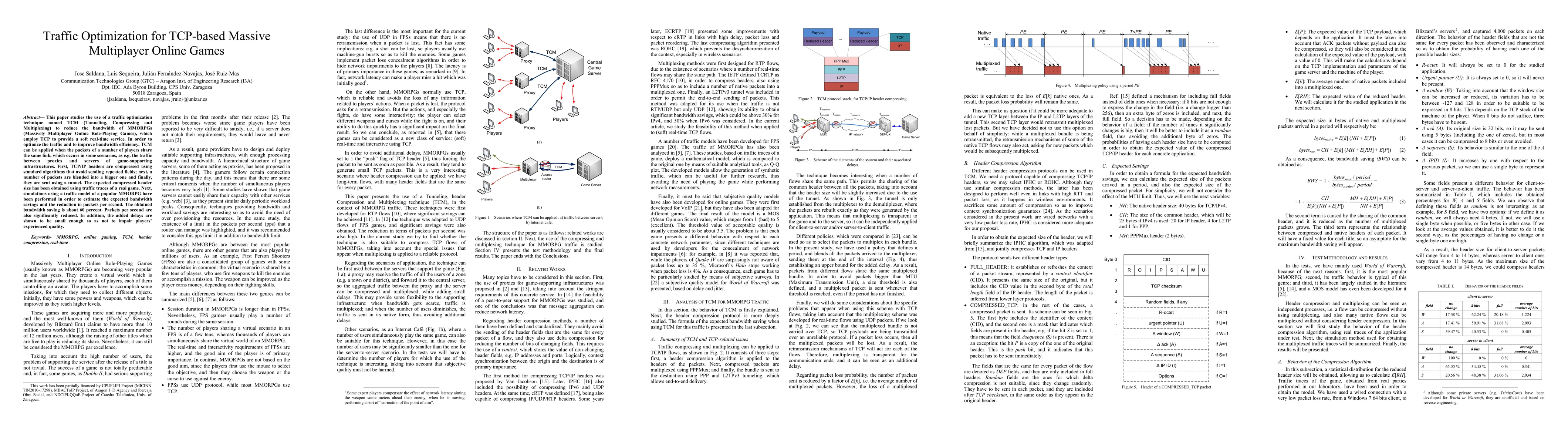 This paper proposes a traffic optimization technique called TCM to reduce bandwidth for TCP-based MMORPGs, achieving a 60 percent reduction in bandwidth and significant packet per second reduction, with minimal added delay.