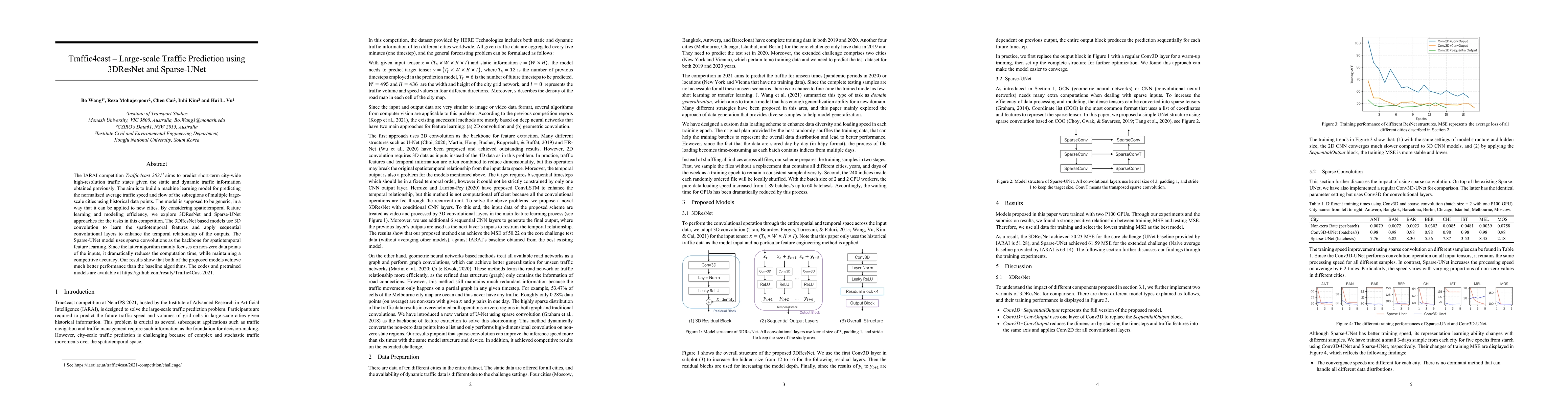 The IARAI competition Traffic4cast 2021 aims to predict short-term city-wide high-resolution traffic states given the static and dynamic traffic information obtained previously. The aim is to build a machine learning model for predicting the normalized average traffic speed and flow of the subregions of multiple large-scale cities using historical data points. The model is supposed to be generic, in a way that it can be applied to new cities. By considering spatiotemporal feature learning and modeling efficiency, we explore 3DResNet and Sparse-UNet approaches for the tasks in this competition. The 3DResNet based models use 3D convolution to learn the spatiotemporal features and apply sequential convolutional layers to enhance the temporal relationship of the outputs. The Sparse-UNet model uses sparse convolutions as the backbone for spatiotemporal feature learning. Since the latter algorithm mainly focuses on non-zero data points of the inputs, it dramatically reduces the computation time, while maintaining a competitive accuracy. Our results show that both of the proposed models achieve much better performance than the baseline algorithms. The codes and pretrained models are available at https://github.com/resuly/Traffic4Cast-2021.
