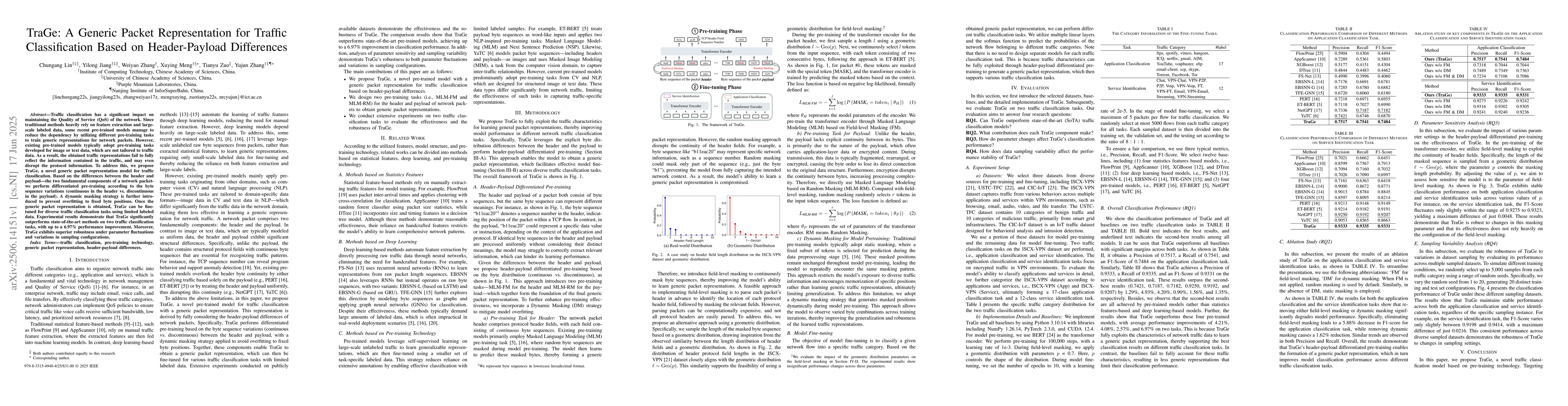 Traffic classification has a significant impact on maintaining the Quality of Service (QoS) of the network. Since traditional methods heavily rely on feature extraction and large scale labeled data, some recent pre-trained models manage to reduce the dependency by utilizing different pre-training tasks to train generic representations for network packets. However, existing pre-trained models typically adopt pre-training tasks developed for image or text data, which are not tailored to traffic data. As a result, the obtained traffic representations fail to fully reflect the information contained in the traffic, and may even disrupt the protocol information. To address this, we propose TraGe, a novel generic packet representation model for traffic classification. Based on the differences between the header and payload-the two fundamental components of a network packet-we perform differentiated pre-training according to the byte sequence variations (continuous in the header vs. discontinuous in the payload). A dynamic masking strategy is further introduced to prevent overfitting to fixed byte positions. Once the generic packet representation is obtained, TraGe can be finetuned for diverse traffic classification tasks using limited labeled data. Experimental results demonstrate that TraGe significantly outperforms state-of-the-art methods on two traffic classification tasks, with up to a 6.97% performance improvement. Moreover, TraGe exhibits superior robustness under parameter fluctuations and variations in sampling configurations.