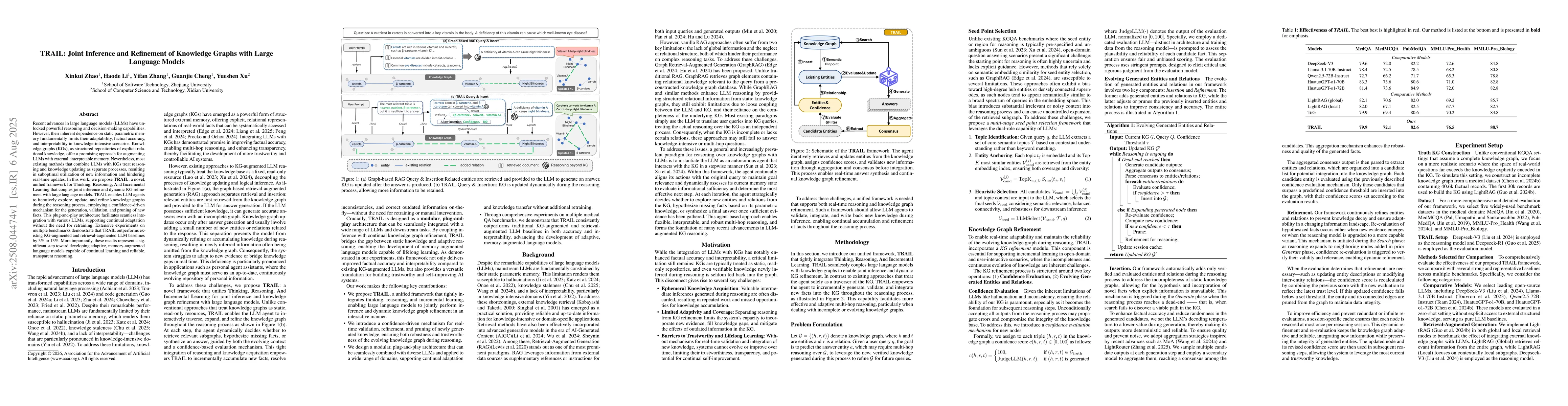 The paper introduces TRAIL, a framework that integrates large language models with knowledge graphs for joint inference and dynamic refinement. TRAIL enables LLMs to adapt and learn continually, improving factual accuracy and transparency in reasoning, outperforming existing methods by 3% to 13% in experiments.