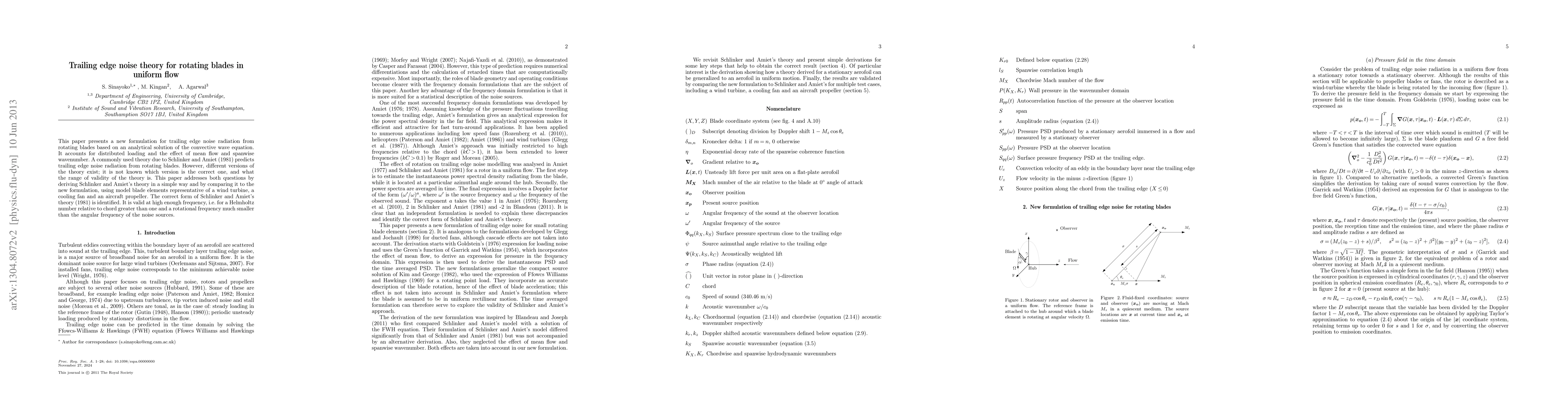 This paper develops a new analytical theory for trailing edge noise from rotating blades, comparing it to Schlinker and Amiet's existing theory to determine its correct form and range of validity, concluding that the latter is valid at high frequencies and low rotational speeds.