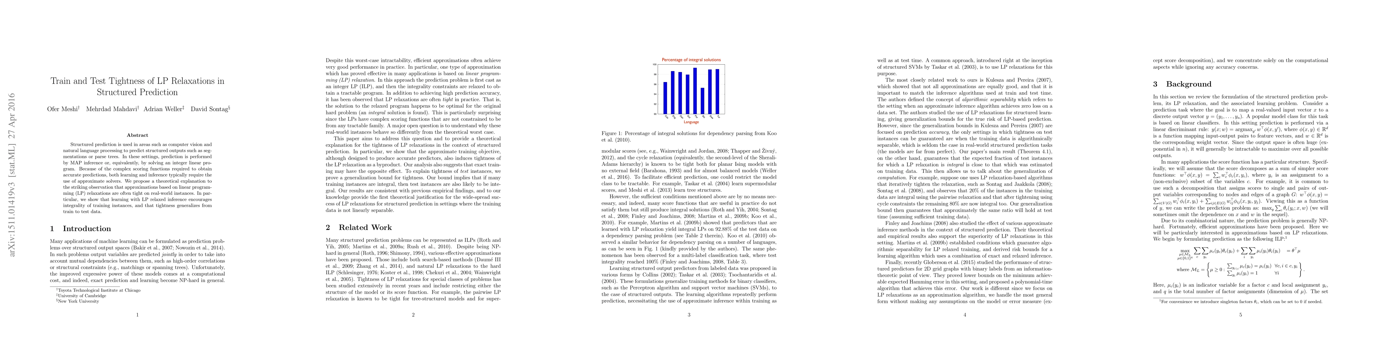 This paper explains why linear programming (LP) relaxations often provide tight approximations for structured prediction tasks, showing that learning with LP relaxations promotes integrality in training data, which generalizes to tight approximations on test data.