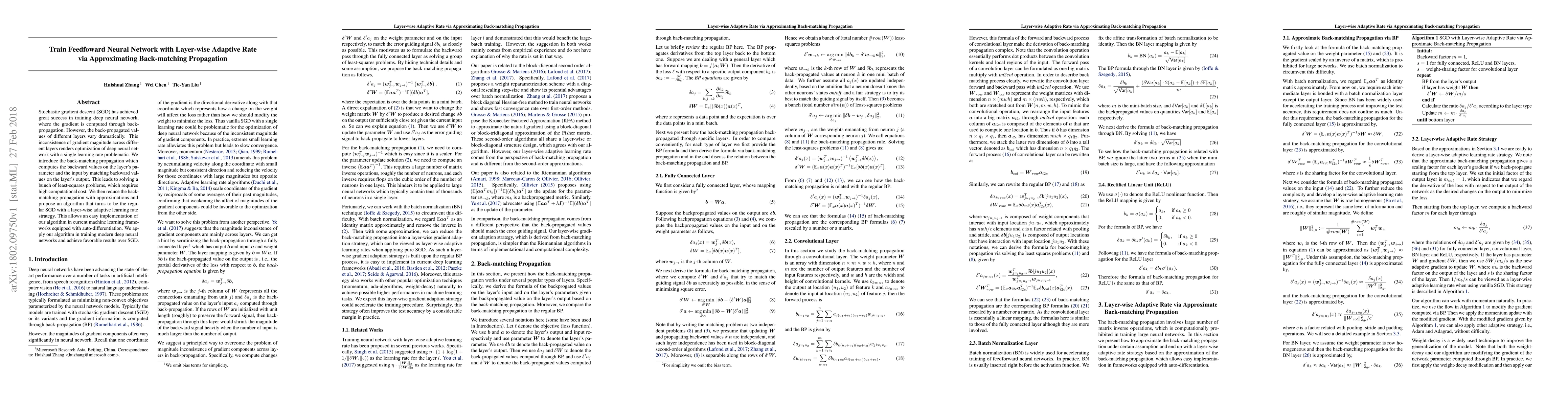 Stochastic gradient descent (SGD) has achieved great success in training deep neural network, where the gradient is computed through back-propagation. However, the back-propagated values of different layers vary dramatically. This inconsistence of gradient magnitude across different layers renders optimization of deep neural network with a single learning rate problematic. We introduce the back-matching propagation which computes the backward values on the layer's parameter and the input by matching backward values on the layer's output. This leads to solving a bunch of least-squares problems, which requires high computational cost. We then reduce the back-matching propagation with approximations and propose an algorithm that turns to be the regular SGD with a layer-wise adaptive learning rate strategy. This allows an easy implementation of our algorithm in current machine learning frameworks equipped with auto-differentiation. We apply our algorithm in training modern deep neural networks and achieve favorable results over SGD.