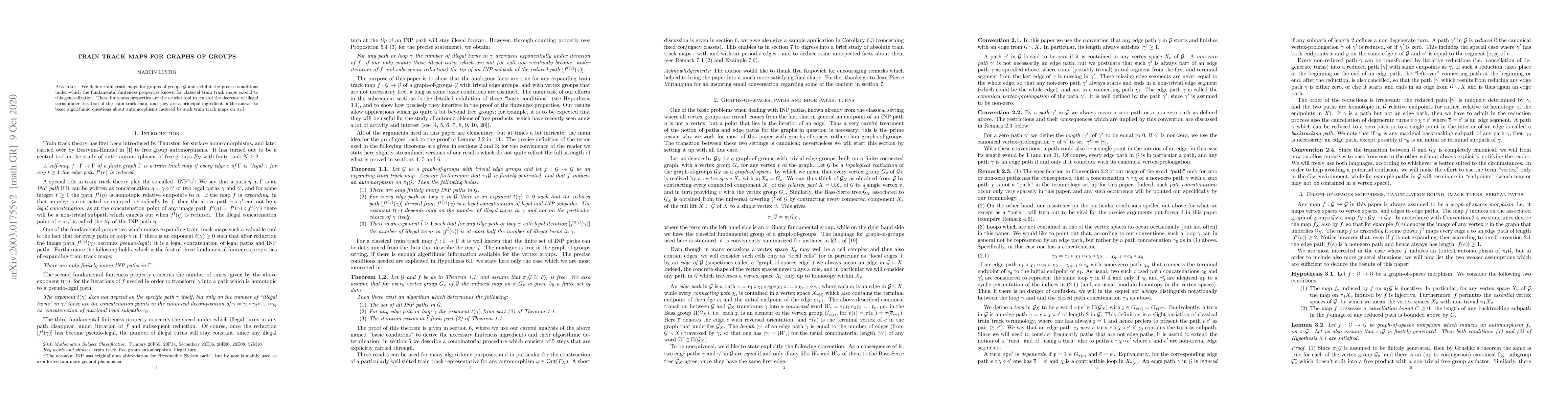 Summary: This paper introduces train track maps for graphs-of-groups and establishes conditions under which classical train track map properties extend to this generalization, crucial for controlling illegal turns and addressing algorithmic questions about induced automorphisms on the fundamental group.