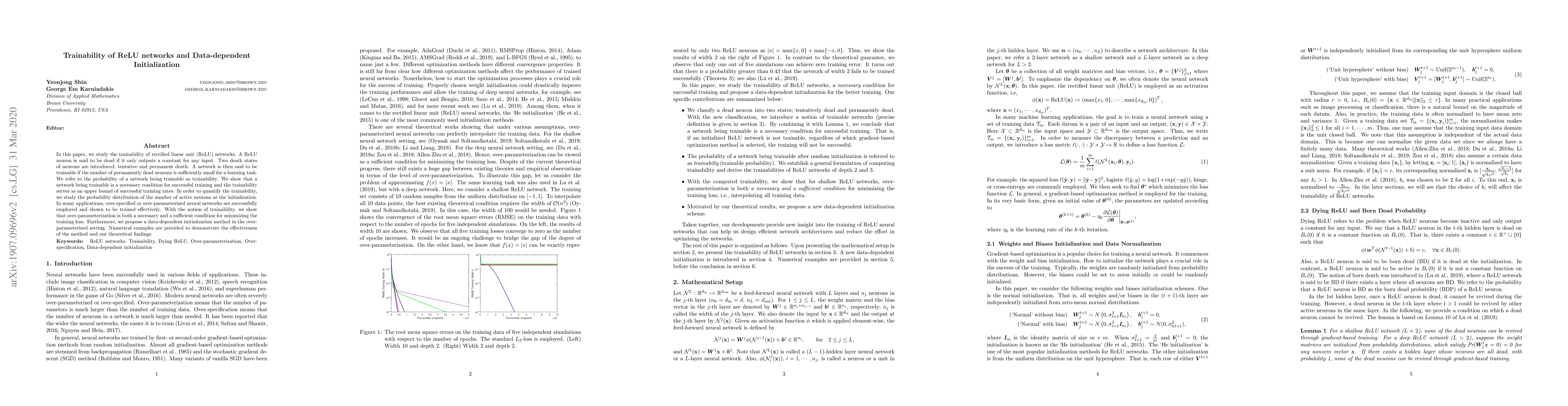 This paper investigates the trainability of ReLU networks, introducing concepts of tentative and permanent neuron death, and demonstrating that trainability is crucial for successful training. It proposes a data-dependent initialization method to enhance the effectiveness of over-parameterized networks, supported by numerical examples.