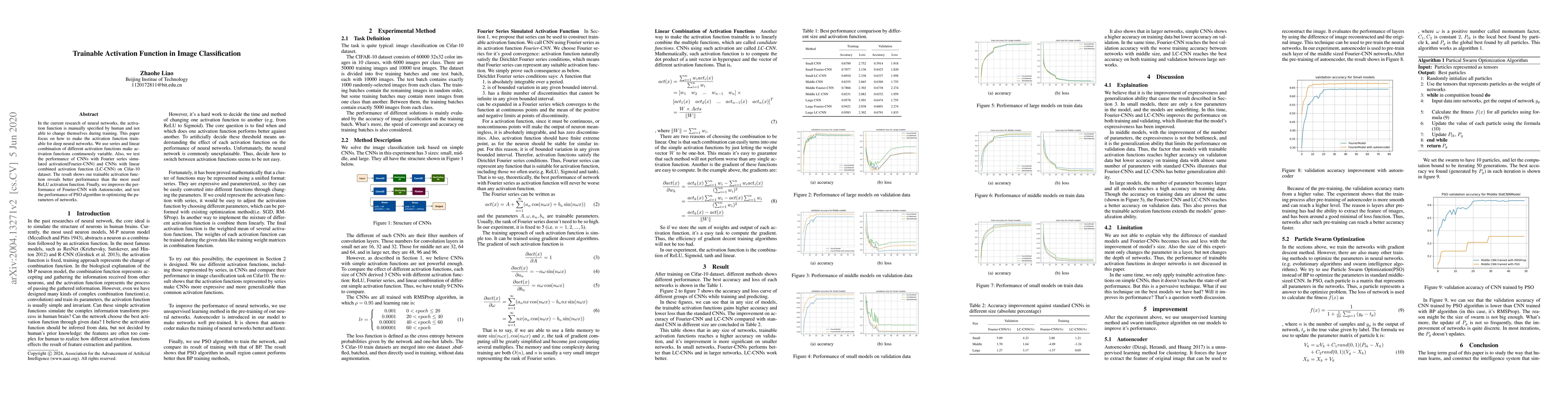 In the current research of neural networks, the activation function is manually specified by human and not able to change themselves during training. This paper focus on how to make the activation function trainable for deep neural networks. We use series and linear combination of different activation functions make activation functions continuously variable. Also, we test the performance of CNNs with Fourier series simulated activation(Fourier-CNN) and CNNs with linear combined activation function (LC-CNN) on Cifar-10 dataset. The result shows our trainable activation function reveals better performance than the most used ReLU activation function. Finally, we improves the performance of Fourier-CNN with Autoencoder, and test the performance of PSO algorithm in optimizing the parameters of networks