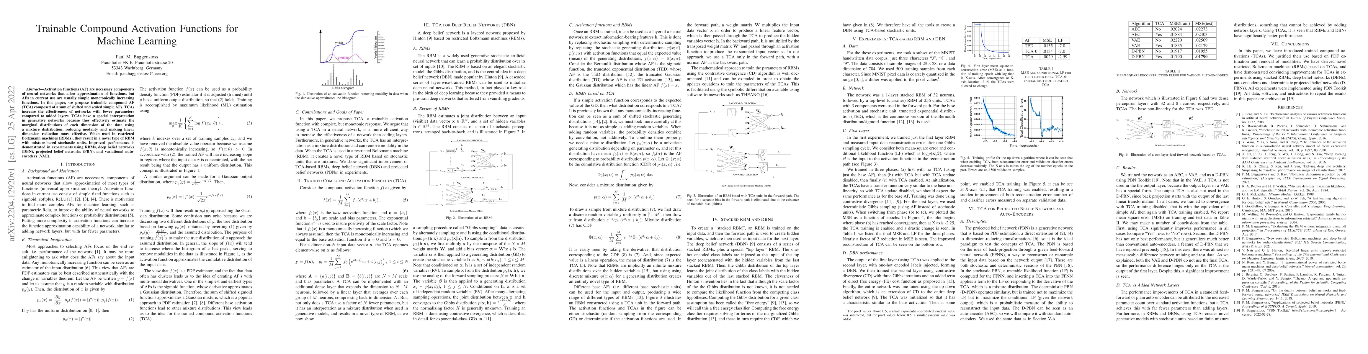Activation functions (AF) are necessary components of neural networks that allow approximation of functions, but AFs in current use are usually simple monotonically increasing functions. In this paper, we propose trainable compound AF (TCA) composed of a sum of shifted and scaled simple AFs. TCAs increase the effectiveness of networks with fewer parameters compared to added layers. TCAs have a special interpretation in generative networks because they effectively estimate the marginal distributions of each dimension of the data using a mixture distribution, reducing modality and making linear dimension reduction more effective. When used in restricted Boltzmann machines (RBMs), they result in a novel type of RBM with mixture-based stochastic units. Improved performance is demonstrated in experiments using RBMs, deep belief networks (DBN), projected belief networks (PBN), and variational auto-encoders (VAE).