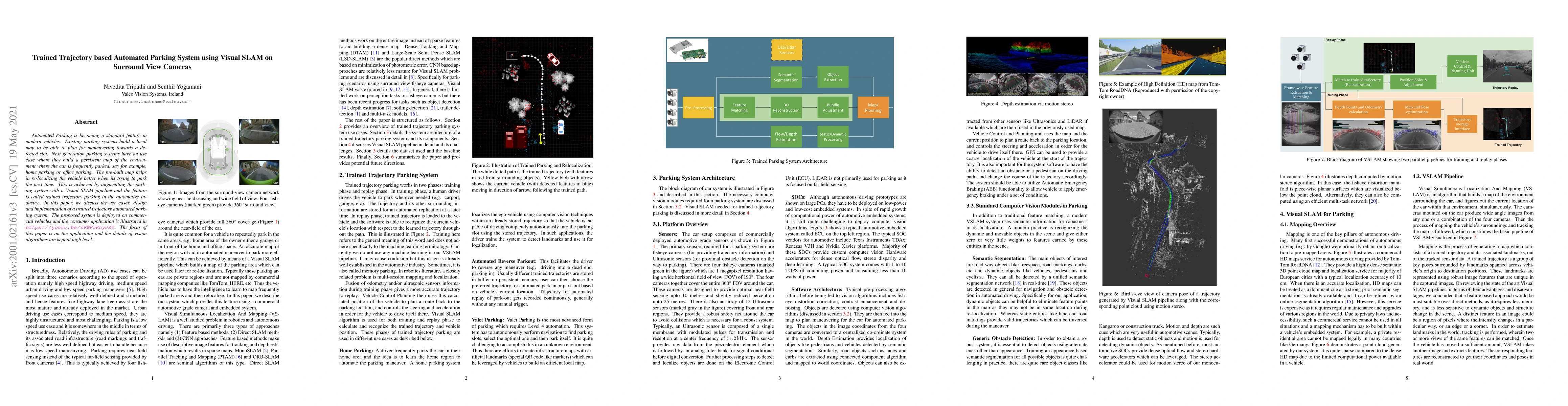 This paper presents a trained trajectory automated parking system using Visual SLAM on surround view cameras, enhancing re-localization for frequent parking spots. The system is implemented on commercial vehicles and demonstrates improved parking efficiency through persistent mapping.
