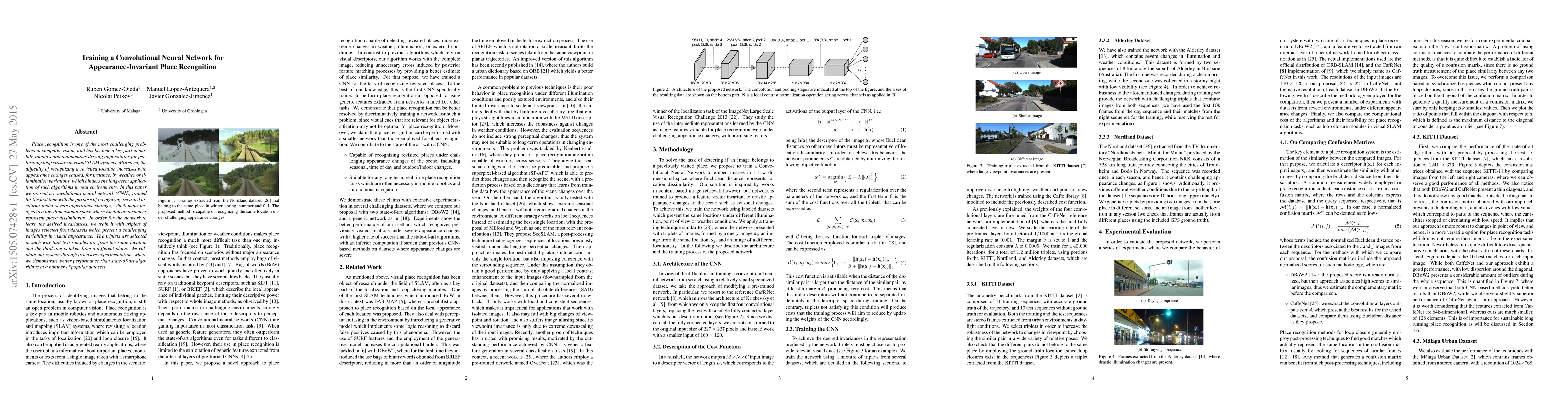This paper introduces a convolutional neural network (CNN) designed for appearance-invariant place recognition, achieving superior performance over state-of-the-art methods in datasets with significant visual variability. The CNN is trained using triplets to learn invariances, mapping images to a low-dimensional space for effective place dissimilarity measurement.
