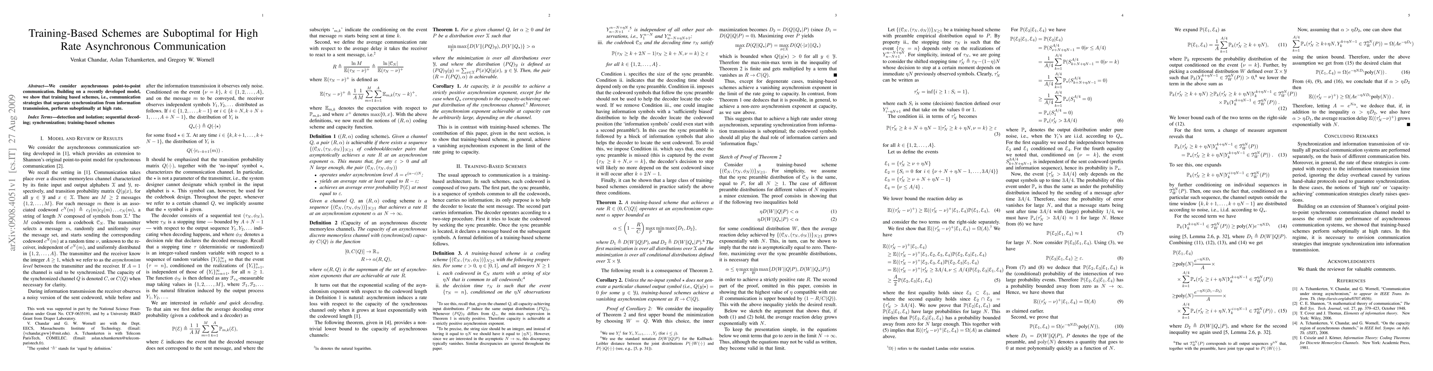 We consider asynchronous point-to-point communication. Building on a recently developed model, we show that training based schemes, i.e., communication strategies that separate synchronization from information transmission, perform suboptimally at high rate.