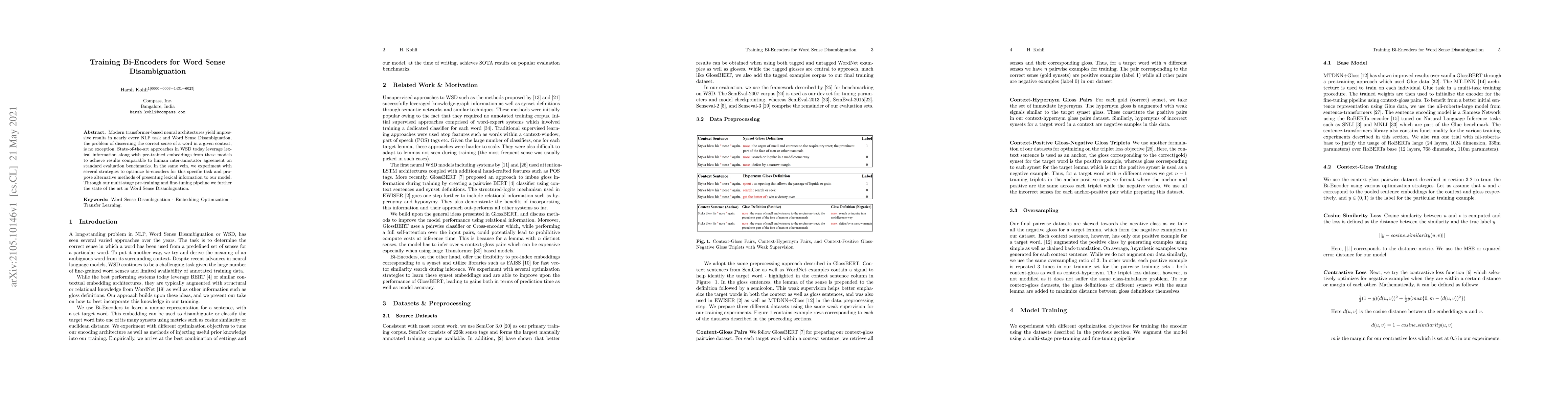 Modern transformer-based neural architectures yield impressive results in nearly every NLP task and Word Sense Disambiguation, the problem of discerning the correct sense of a word in a given context, is no exception. State-of-the-art approaches in WSD today leverage lexical information along with pre-trained embeddings from these models to achieve results comparable to human inter-annotator agreement on standard evaluation benchmarks. In the same vein, we experiment with several strategies to optimize bi-encoders for this specific task and propose alternative methods of presenting lexical information to our model. Through our multi-stage pre-training and fine-tuning pipeline we further the state of the art in Word Sense Disambiguation.