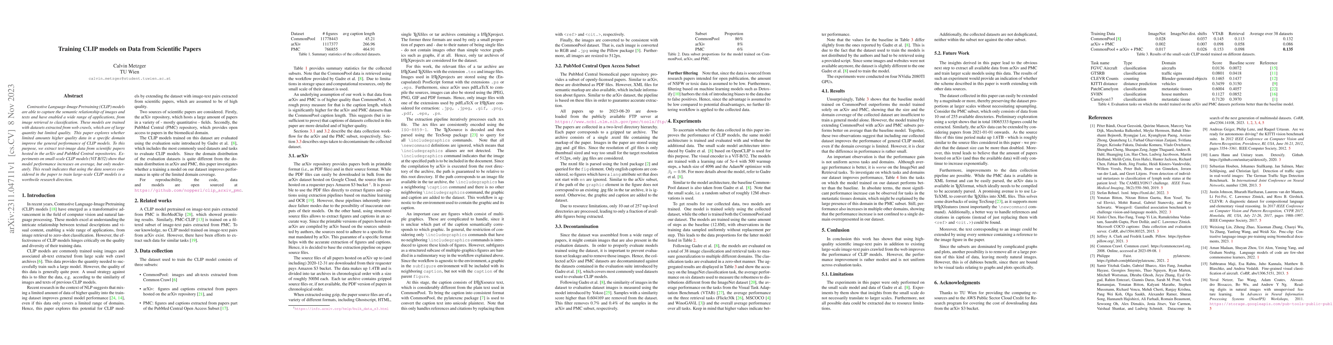 This paper investigates if training CLIP models on high-quality domain-specific data from scientific papers enhances their performance. Results show modest improvements in small-scale models, suggesting further research into large-scale models trained on such data is promising.