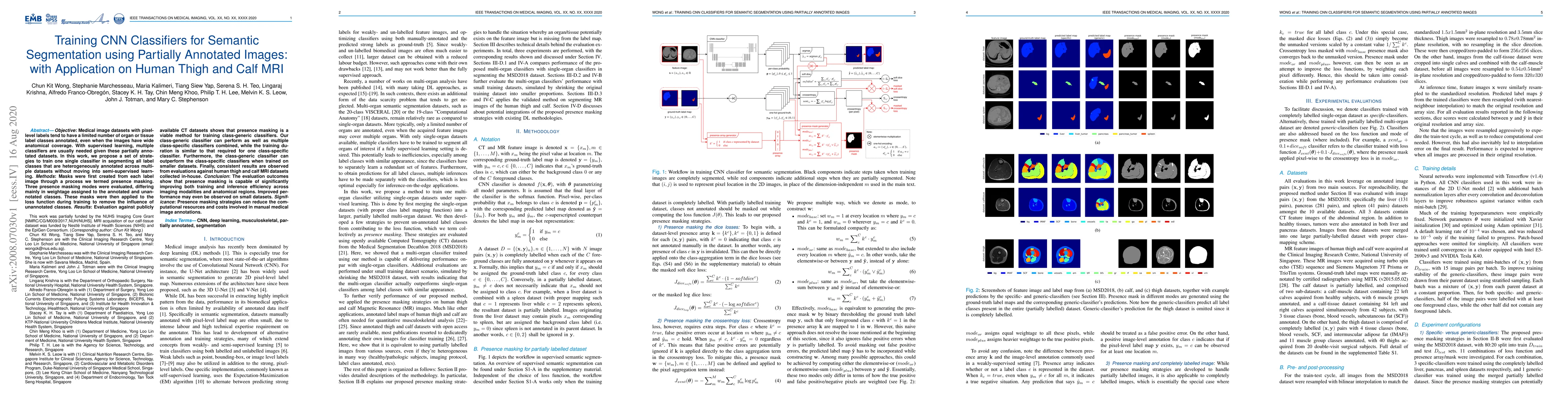 Objective: Medical image datasets with pixel-level labels tend to have a limited number of organ or tissue label classes annotated, even when the images have wide anatomical coverage. With supervised learning, multiple classifiers are usually needed given these partially annotated datasets. In this work, we propose a set of strategies to train one single classifier in segmenting all label classes that are heterogeneously annotated across multiple datasets without moving into semi-supervised learning. Methods: Masks were first created from each label image through a process we termed presence masking. Three presence masking modes were evaluated, differing mainly in weightage assigned to the annotated and unannotated classes. These masks were then applied to the loss function during training to remove the influence of unannotated classes. Results: Evaluation against publicly available CT datasets shows that presence masking is a viable method for training class-generic classifiers. Our class-generic classifier can perform as well as multiple class-specific classifiers combined, while the training duration is similar to that required for one class-specific classifier. Furthermore, the class-generic classifier can outperform the class-specific classifiers when trained on smaller datasets. Finally, consistent results are observed from evaluations against human thigh and calf MRI datasets collected in-house. Conclusion: The evaluation outcomes show that presence masking is capable of significantly improving both training and inference efficiency across imaging modalities and anatomical regions. Improved performance may even be observed on small datasets. Significance: Presence masking strategies can reduce the computational resources and costs involved in manual medical image annotations. All codes are publicly available at https://github.com/wong-ck/DeepSegment.