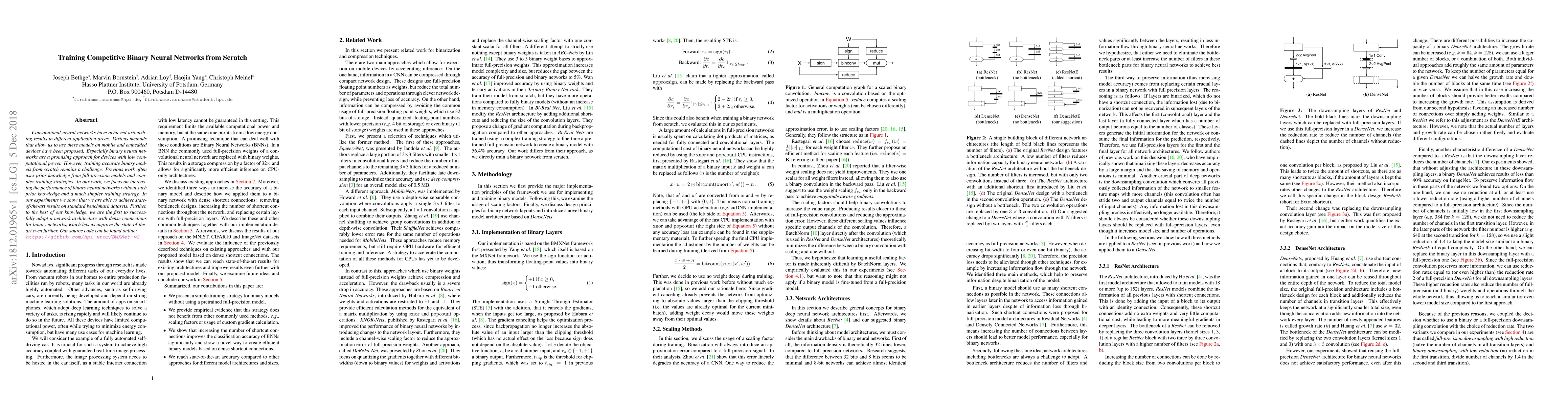 Convolutional neural networks have achieved astonishing results in different application areas. Various methods that allow us to use these models on mobile and embedded devices have been proposed. Especially binary neural networks are a promising approach for devices with low computational power. However, training accurate binary models from scratch remains a challenge. Previous work often uses prior knowledge from full-precision models and complex training strategies. In our work, we focus on increasing the performance of binary neural networks without such prior knowledge and a much simpler training strategy. In our experiments we show that we are able to achieve state-of-the-art results on standard benchmark datasets. Further, to the best of our knowledge, we are the first to successfully adopt a network architecture with dense connections for binary networks, which lets us improve the state-of-the-art even further.