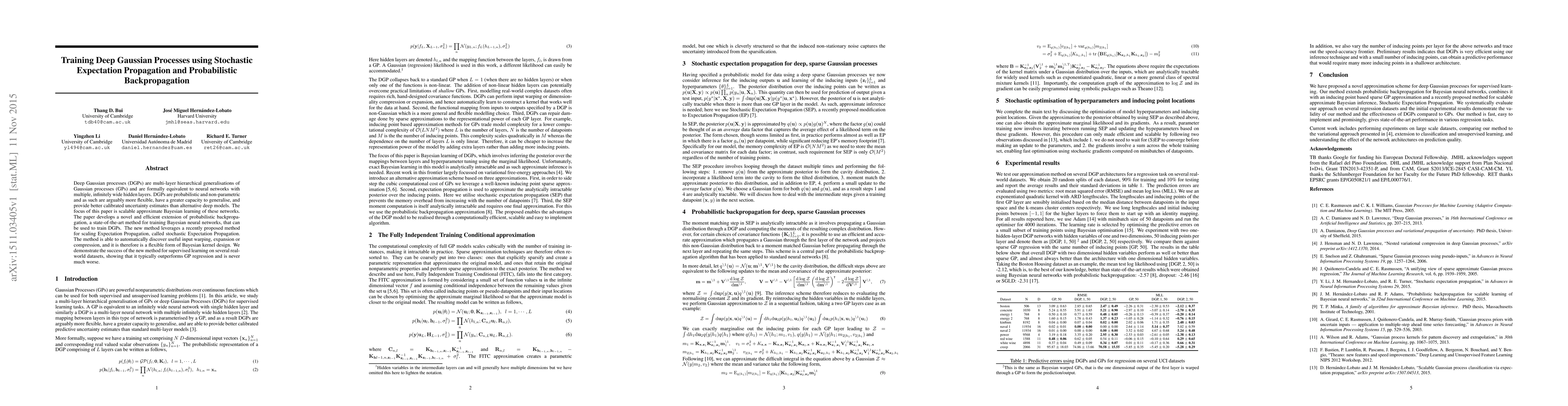 This paper introduces a scalable approximate Bayesian learning method for training Deep Gaussian Processes (DGPs) by extending probabilistic backpropagation with stochastic Expectation Propagation. The proposed method effectively discovers input warping and demonstrates superior performance on real-world datasets compared to Gaussian Process regression.