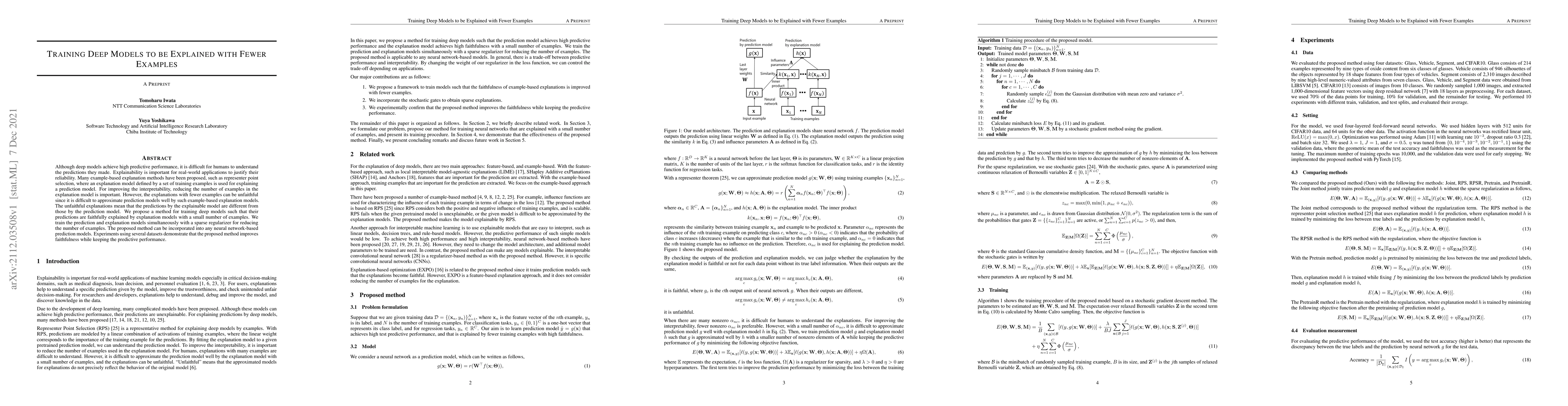 This paper proposes a method to train deep models that can be explained with fewer examples while maintaining prediction accuracy. By using a sparse regularizer during training, the method aims to reduce the number of examples needed for explanations without compromising the faithfulness of the explanations. Experimental results show improved interpretability without sacrificing predictive performance.