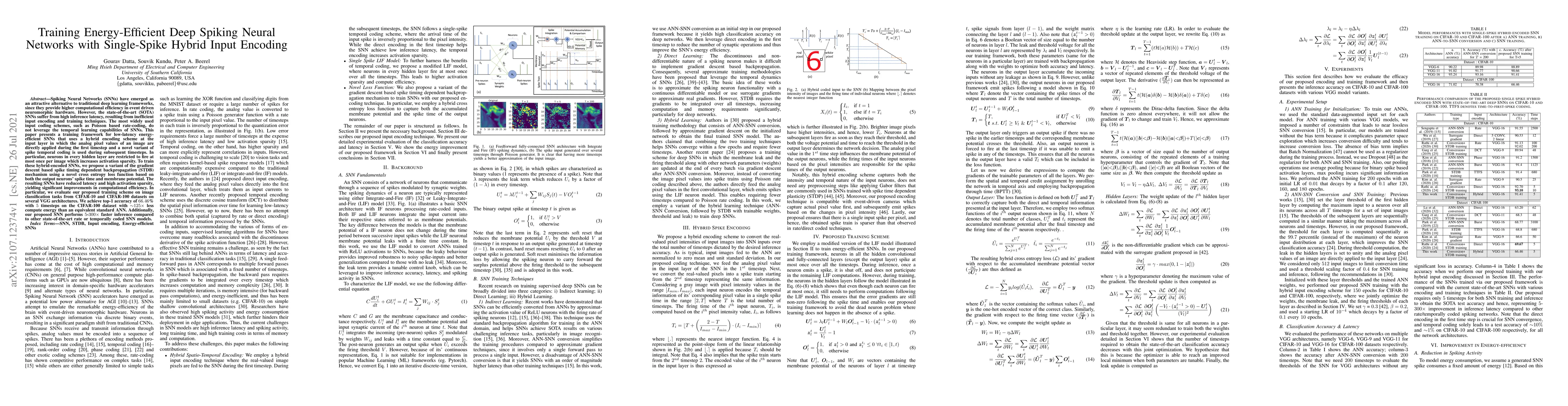 This paper proposes a training framework for energy-efficient Spiking Neural Networks (SNNs) using a hybrid input encoding scheme that combines direct analog pixel values and a novel spike temporal coding. The method achieves reduced latency and high activation sparsity, significantly improving computational efficiency, with notable performance on CIFAR-100 image classification tasks.