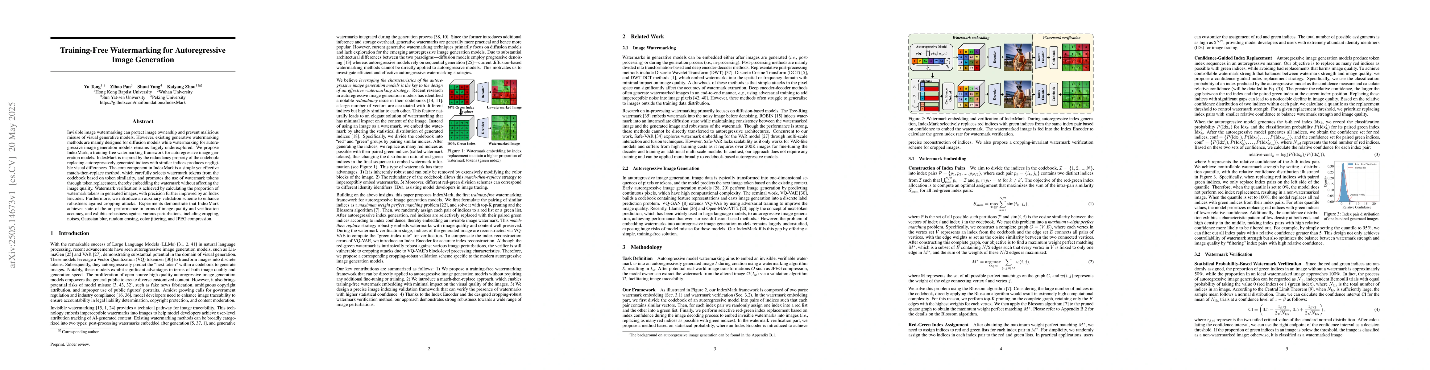 Researchers propose IndexMark, a training-free watermarking framework for autoregressive image generation models, achieving state-of-the-art performance in terms of image quality and verification accuracy.