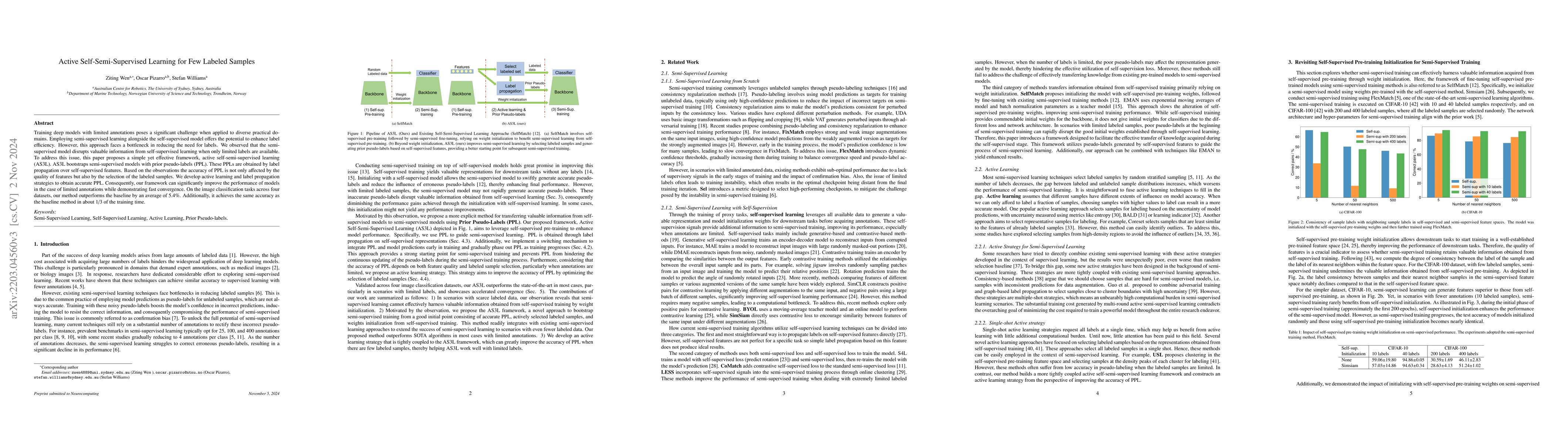 This paper proposes an active self-semi-supervised learning (AS3L) framework that leverages prior pseudo-labels (PPL) derived from label propagation over self-supervised features to improve model training with few annotations. The method enhances the accuracy of PPL and demonstrates significant performance gains, outperforming baselines by an average of 7% on four datasets while reducing training time by about one-third.