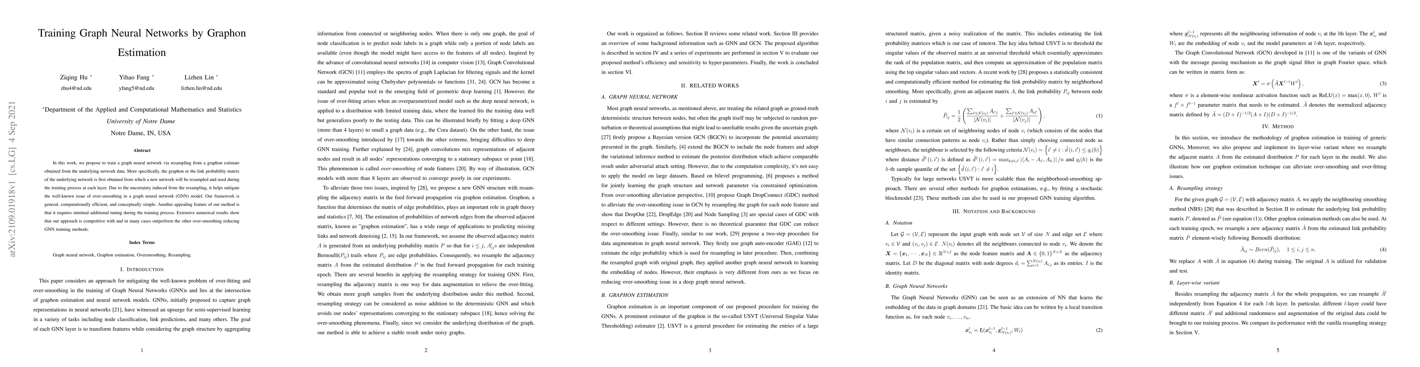 This work is novel as it is the first to utilize graphon estimation on Graph Neural Networks, providing a new approach to address over-smoothing and over-fitting problems in GNN training.