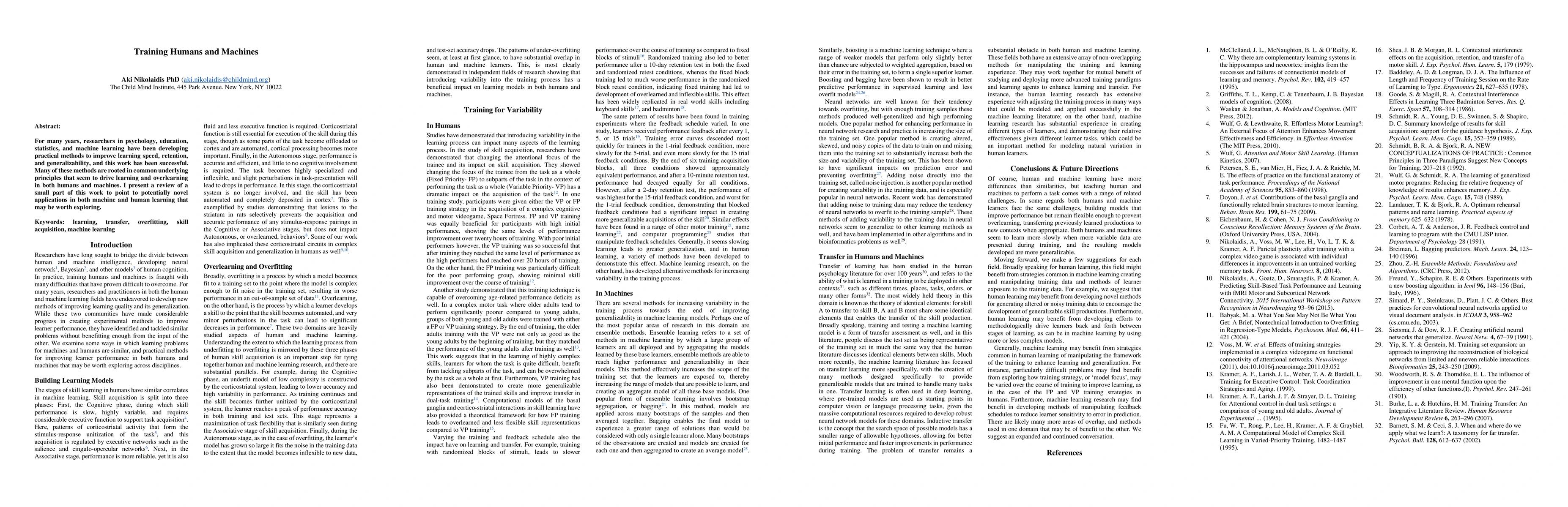 For many years, researchers in psychology, education, statistics, and machine learning have been developing practical methods to improve learning speed, retention, and generalizability, and this work has been successful. Many of these methods are rooted in common underlying principles that seem to drive learning and overlearning in both humans and machines. I present a review of a small part of this work to point to potentially novel applications in both machine and human learning that may be worth exploring.