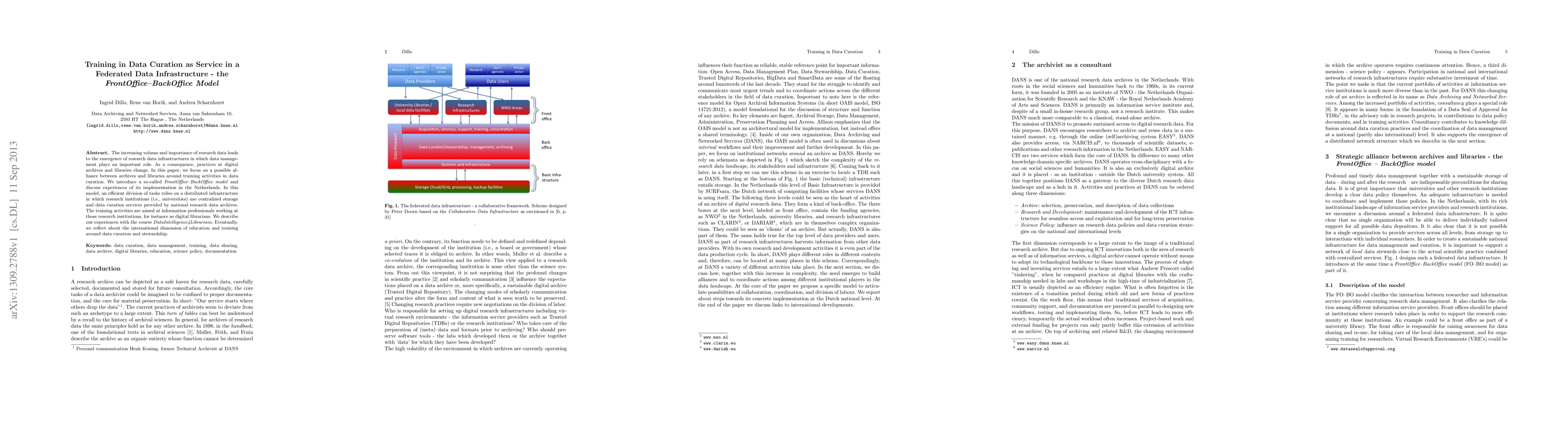 This paper explores the alliance between archives and libraries through training in data curation within a federated data infrastructure, introducing a FrontOffice-BackOffice model. It discusses the implementation in the Netherlands, focusing on the course DataIntelligence4Librarians and reflecting on the international scope of data curation education.