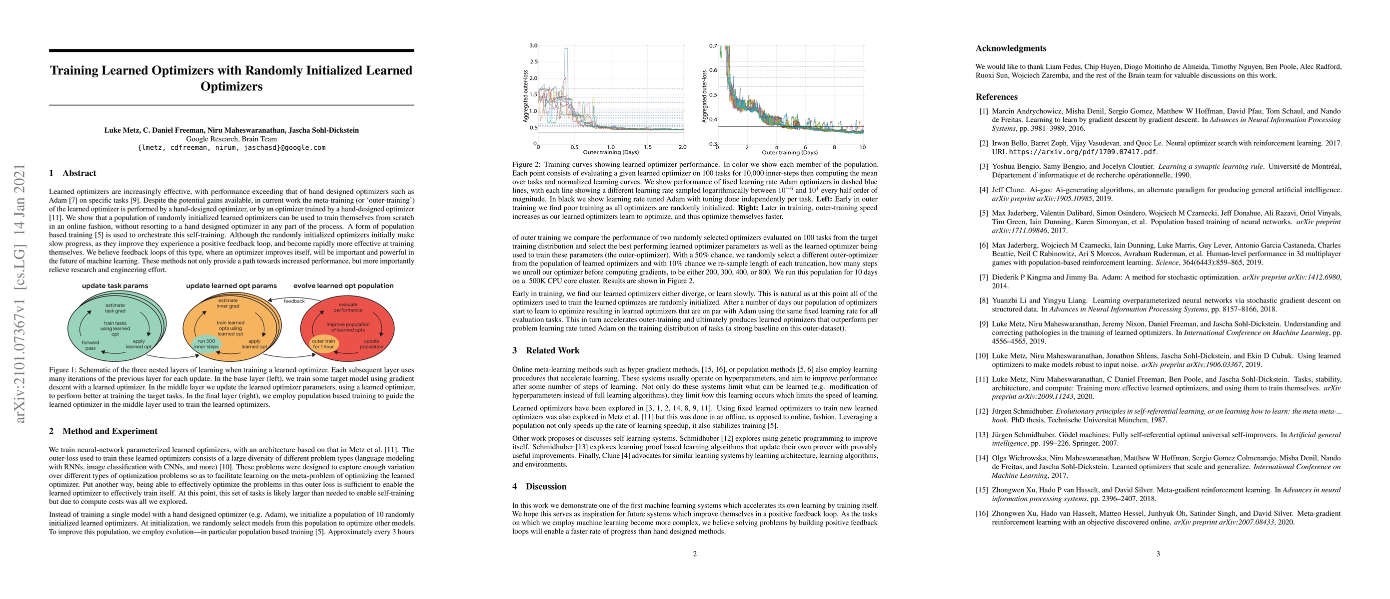 A population of randomly initialized learned optimizers is used to train themselves from scratch in an online fashion.