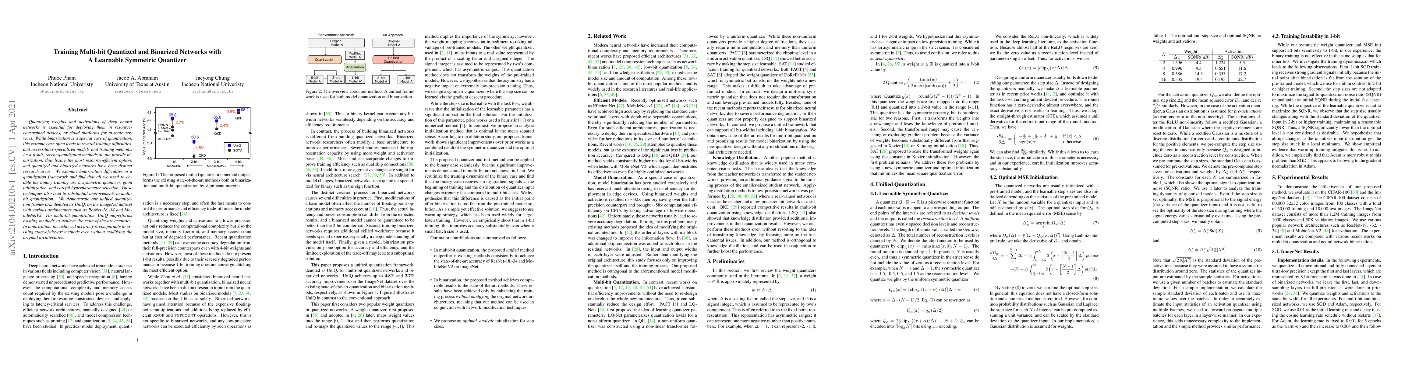 This paper proposes UniQ, a unified quantization framework that enables efficient training of multi-bit quantized and binarized neural networks using a learnable symmetric quantizer, good initialization, and careful hyperparameter tuning. UniQ achieves state-of-the-art accuracy on multi-bit quantization and comparable results on binarization for various architectures on ImageNet.