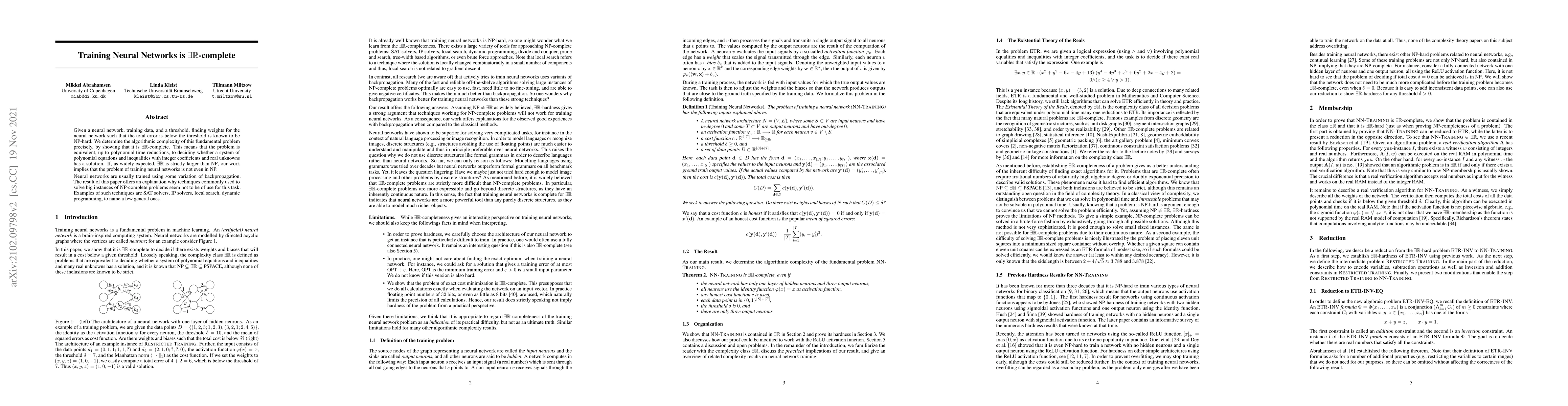 This paper establishes that training neural networks is $\exists\mathbb R$-complete, indicating it is as hard as deciding the solvability of systems of polynomial equations and inequalities with real unknowns. It implies that traditional NP-complete problem-solving techniques are unlikely to be effective for training neural networks.