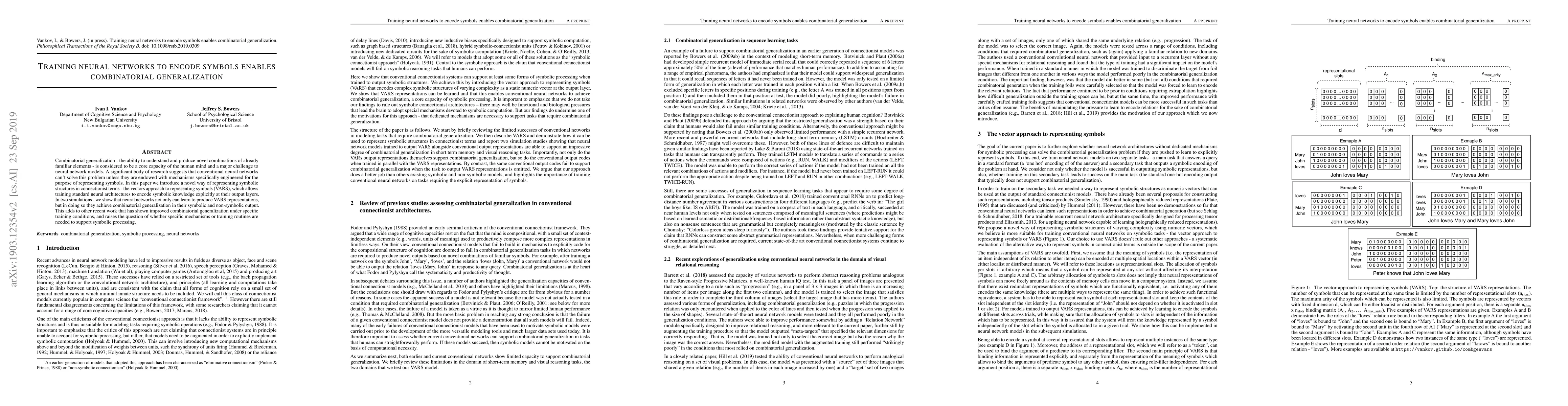 Neural networks can now encode symbolic knowledge explicitly, enabling combinatorial generalization through a novel vector representation approach, VARS. This innovation improves the models' ability to understand and produce novel combinations of familiar elements.