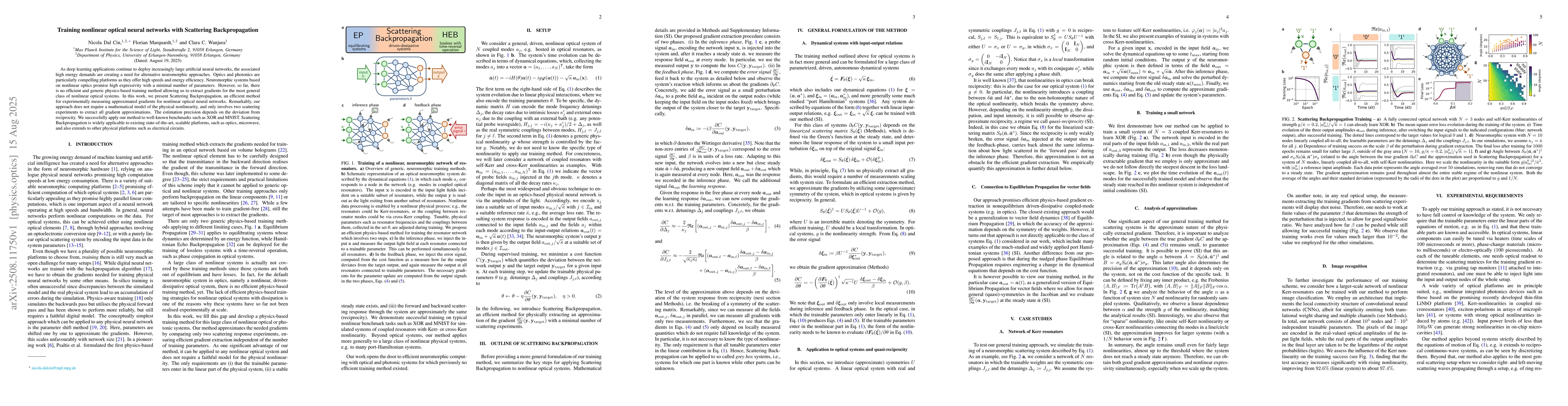 This research introduces Scattering Backpropagation, a novel method for training nonlinear optical neural networks. It enables gradient measurement through two scattering experiments, bypassing the need for a mathematical model of the physical nonlinearity. This method is applicable to various platforms including optics, microwave, and electrical circuits, and has been successfully tested on benchmarks like XOR and MNIST.