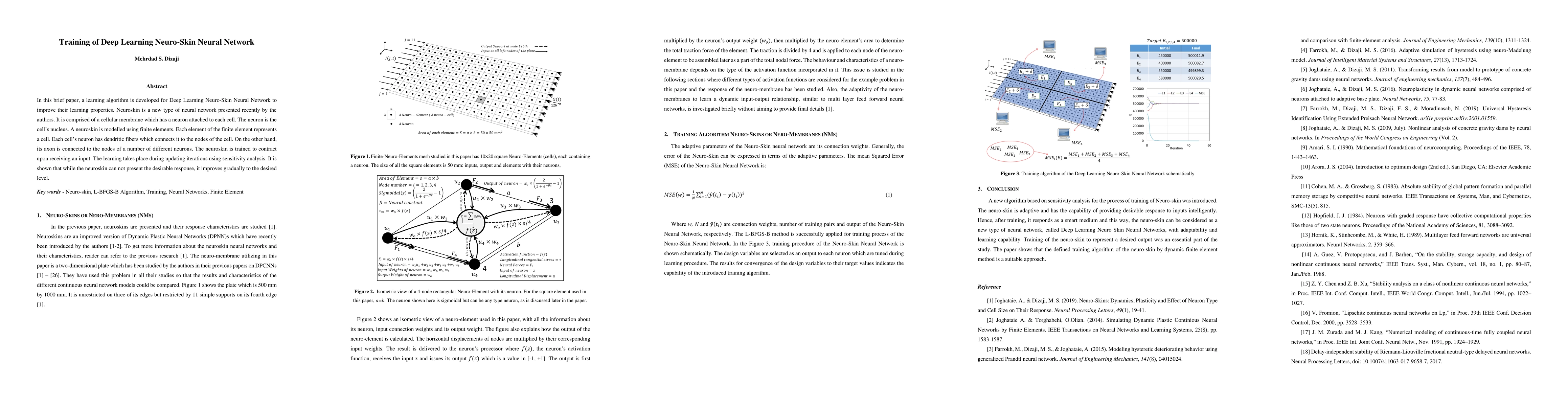 Researchers developed a learning algorithm for a new neural network called Neuro-Skin Neural Network, which improves its response to inputs through sensitivity analysis. The network gradually converges to the desired level of performance over iterations.
