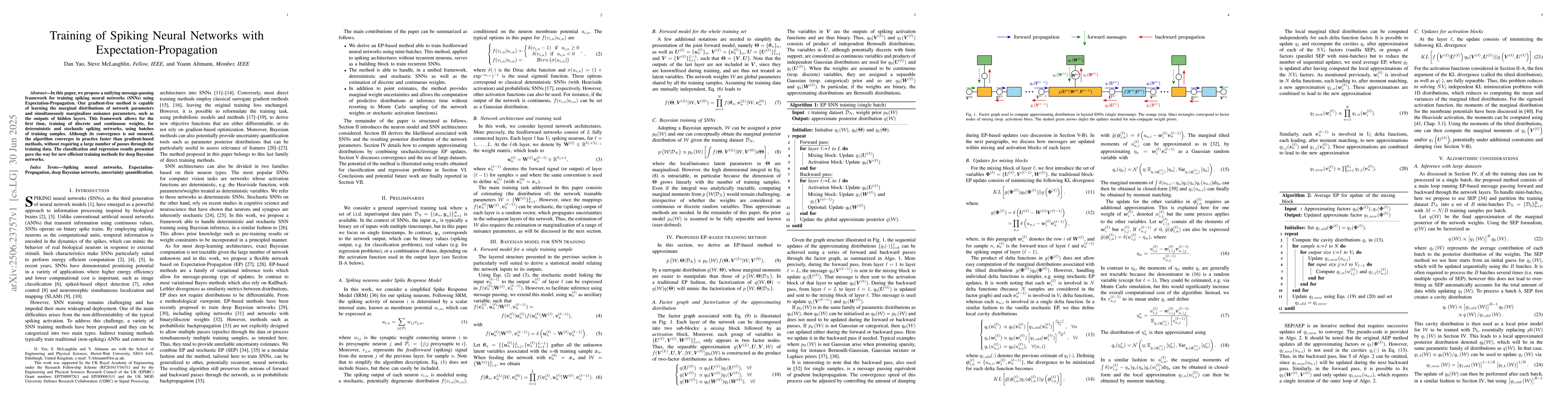 The development of a novel expectation propagation algorithm specifically designed for training spiking neural networks.