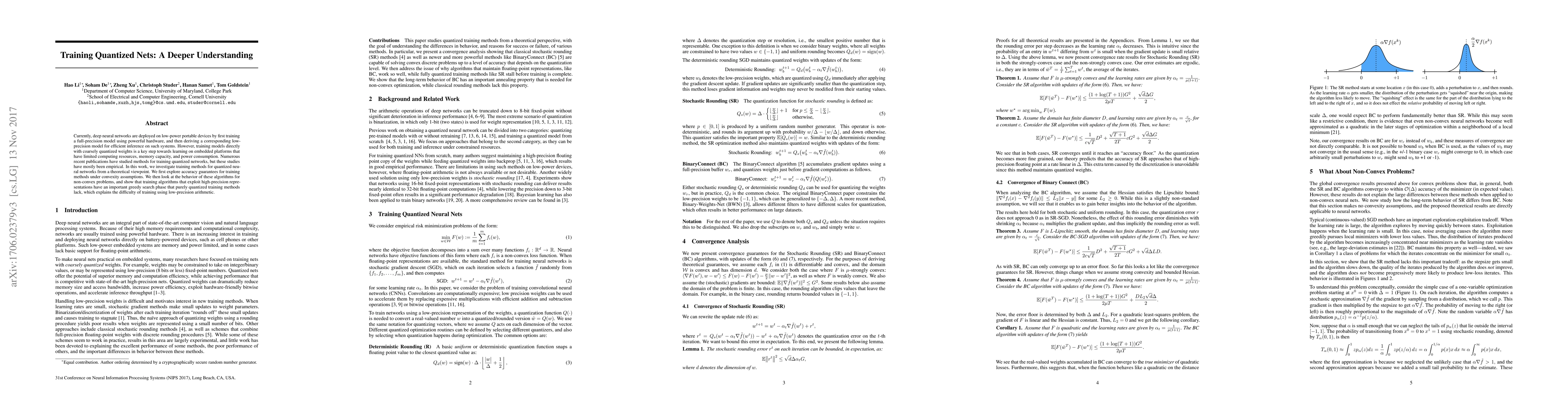 This paper explores training methods for quantized neural networks from a theoretical perspective, examining both convex and non-convex problems. It highlights that algorithms using high-precision representations have a crucial greedy search phase absent in purely quantized methods, explaining the challenges of low-precision training.
