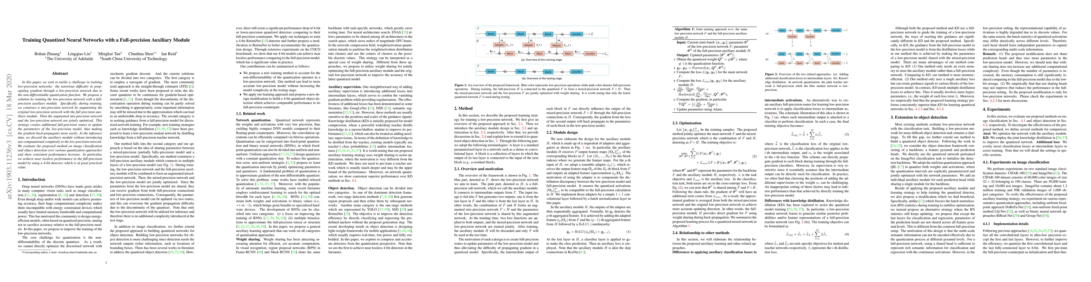 This paper proposes a method to train quantized neural networks by using a full-precision auxiliary module to facilitate gradient backpropagation through non-differentiable quantization. The mix-precision network, combining the low-precision and full-precision modules, is jointly optimized, achieving near lossless performance in image classification and object detection.