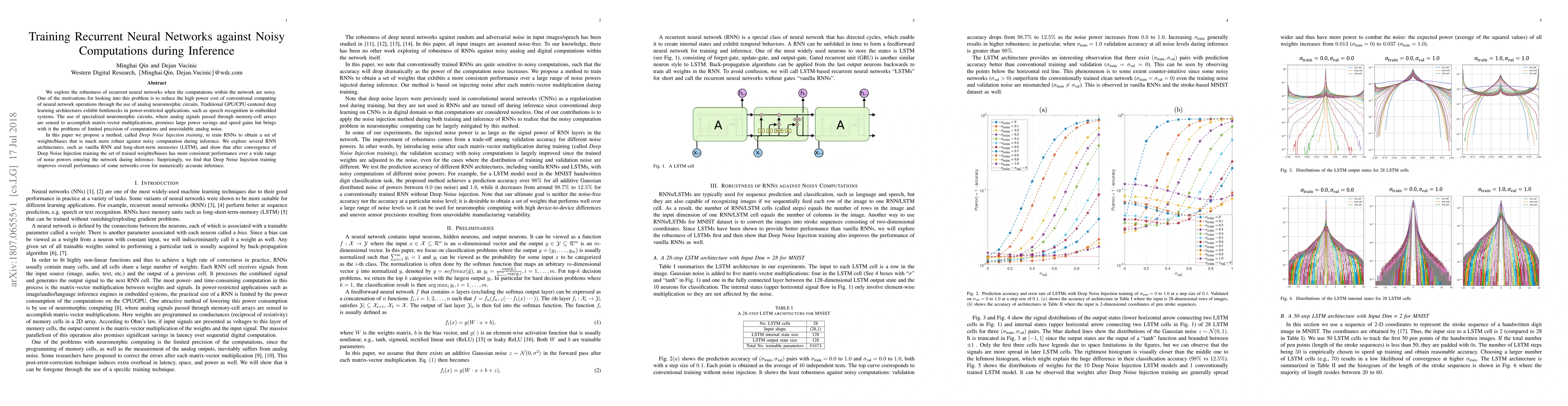 The authors propose a method called Deep Noise Injection training to train RNNs to obtain robust weights/biases against noisy computation during inference.