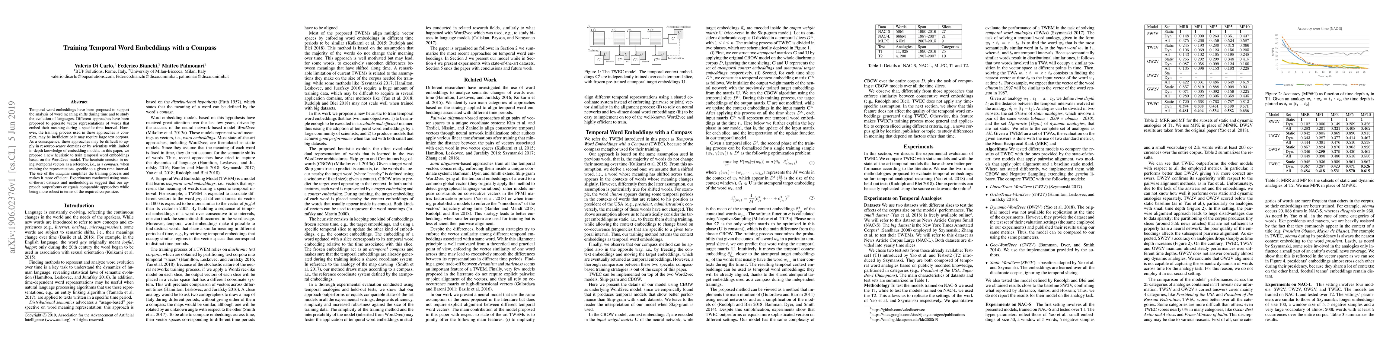 This paper proposes a new heuristic to train temporal word embeddings using the Word2vec model, employing atemporal vectors as a reference "compass" to simplify and enhance the training process. Experimental results show that the approach is both efficient and competitive, requiring smaller text corpora compared to existing methods.