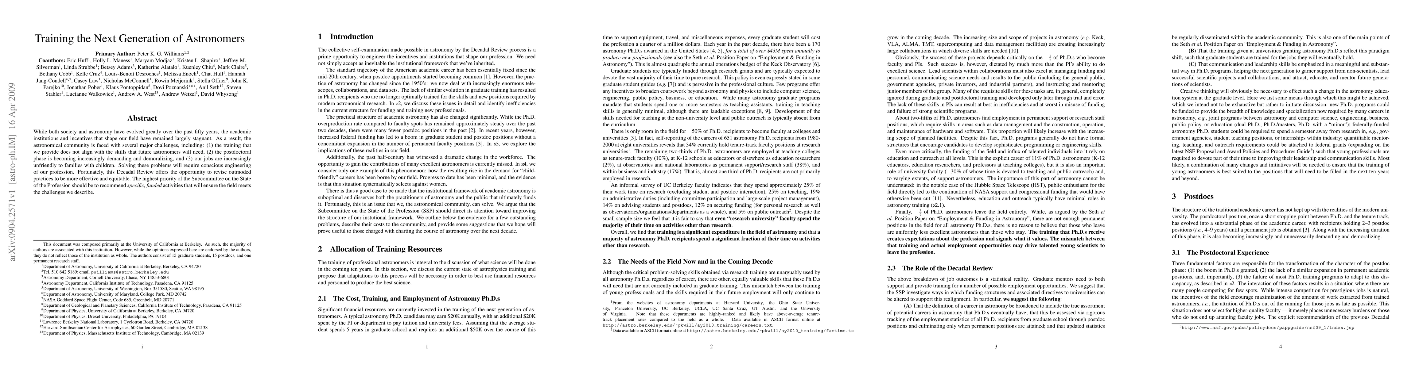 The astronomical community faces challenges in training the next generation of astronomers due to outdated practices, leading to demands for conscious engineering to address issues such as unfriendly work environments and postdoctoral phase demotivation.