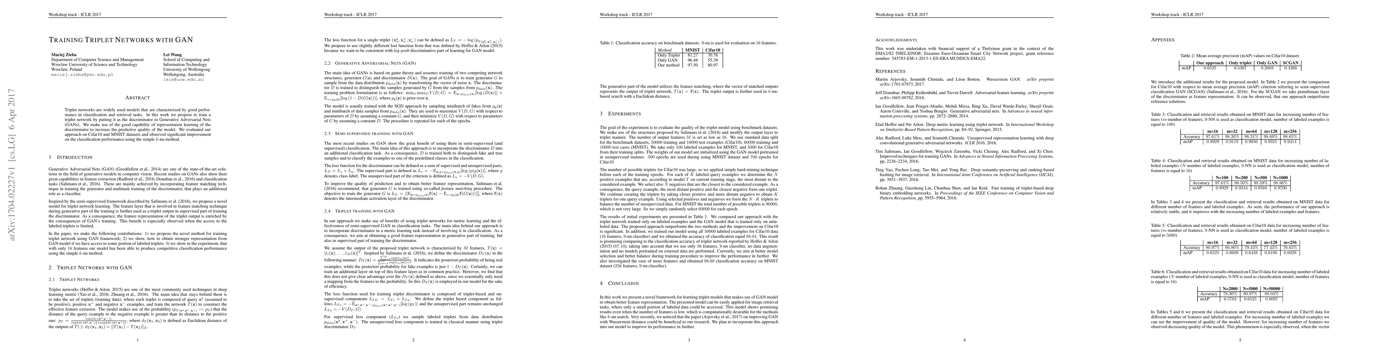 Researchers propose training triplet networks using Generative Adversarial Nets (GANs) to improve classification performance, achieving significant gains on datasets like Cifar10 and MNIST.