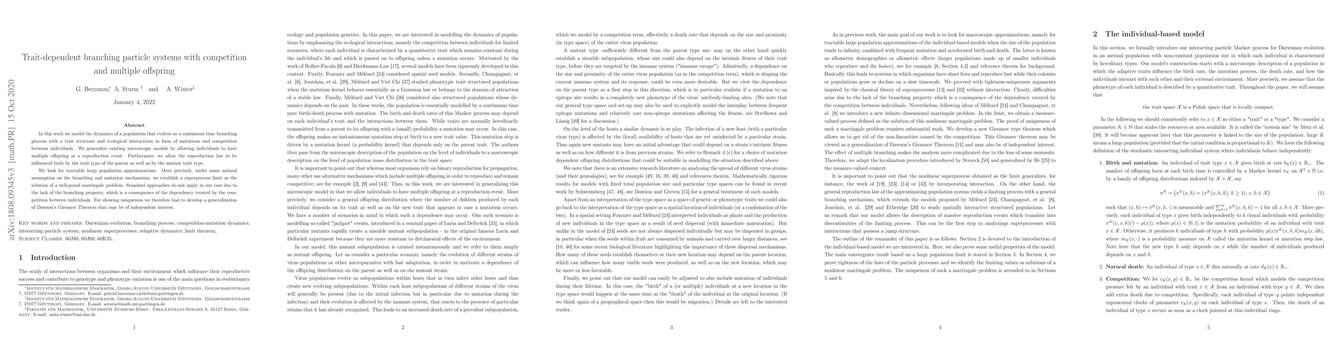 This research paper develops a mathematical model for population evolution with trait structure and ecological interactions, allowing for multiple offspring and competition between individuals. It establishes a superprocess limit as a solution to a martingale problem, providing new insights into population dynamics.