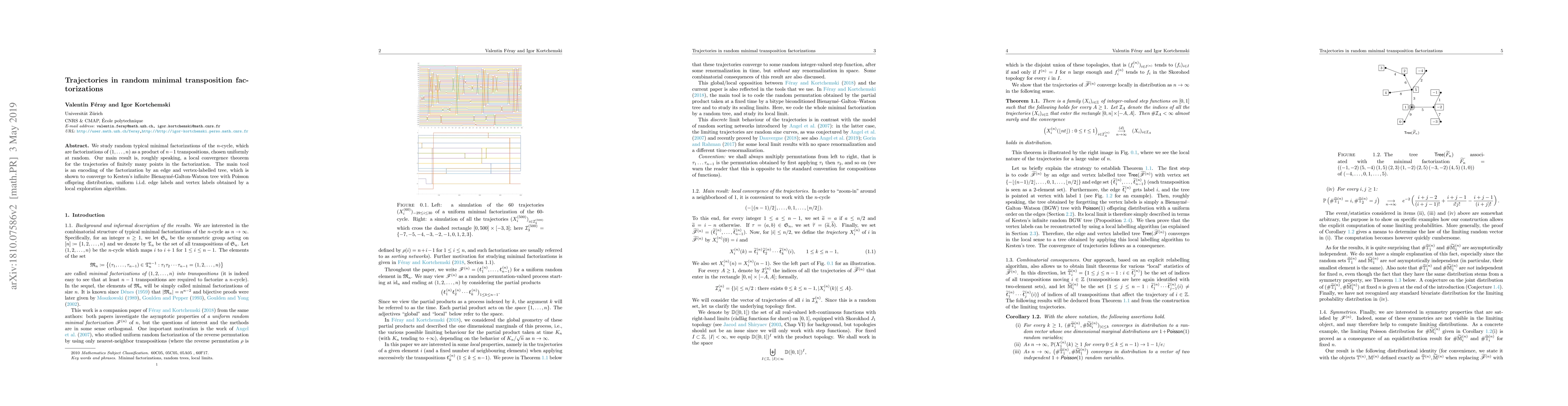 This paper investigates random minimal transposition factorizations of the $n$-cycle into $n-1$ transpositions, revealing local convergence of trajectories of points within these factorizations. The study employs an encoding of factorizations as edge and vertex-labelled trees, which converges to Kesten's infinite Bienaymé-Galton-Watson tree.