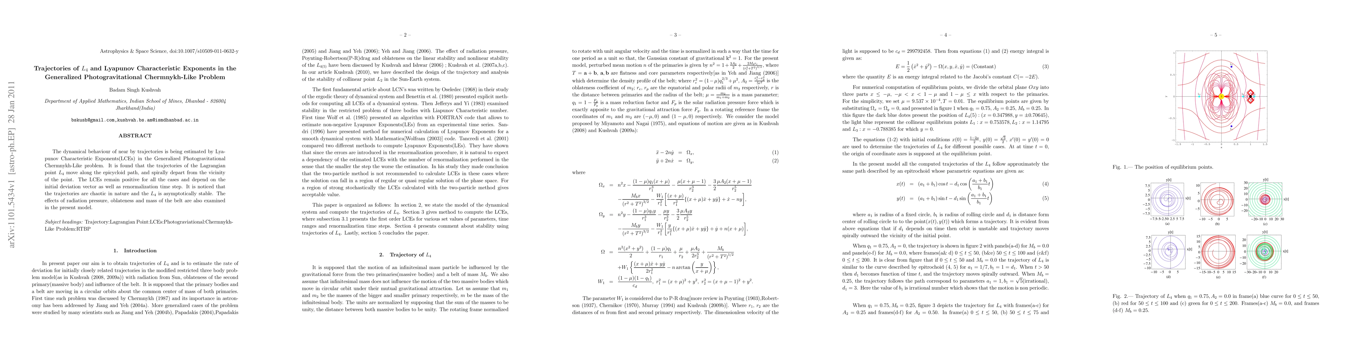 This paper explores the chaotic dynamics of $L_4$ trajectories in the Generalized Photogravitational Chermnykh-Like problem, revealing their epicycloid path and spiral departure. The Lyapunov Characteristic Exponents remain positive, indicating chaotic behavior and asymptotic stability of $L_4$, with influences from radiation pressure, oblateness, and mass of the belt.