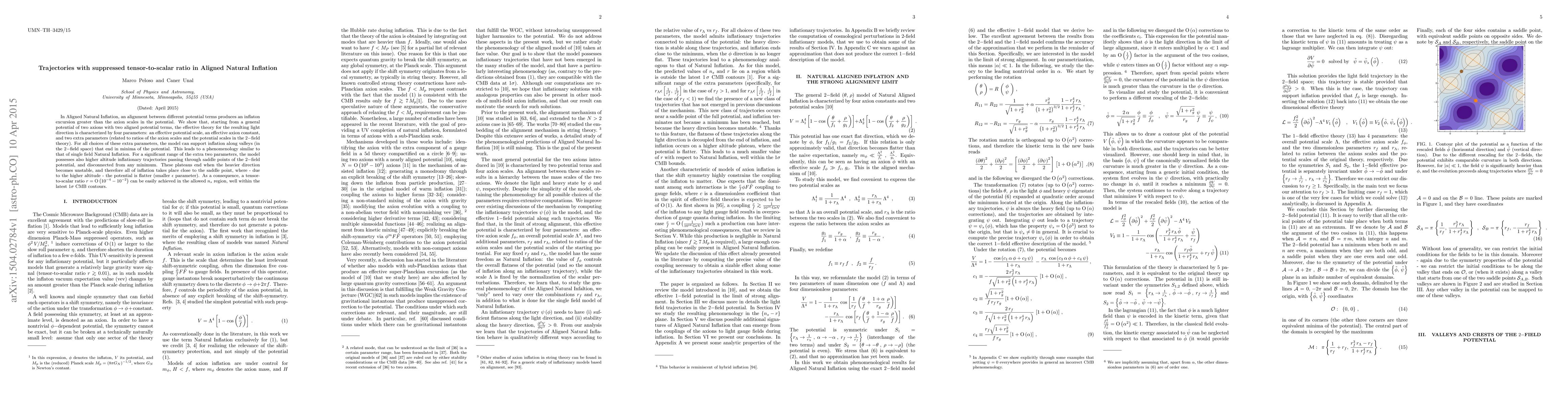 In Aligned Natural Inflation, an alignment between different potential terms produces an inflaton excursion greater than the axion scales in the potential. We show that, starting from a general potential of two axions with two aligned potential terms, the effective theory for the resulting light direction is characterized by four parameters: an effective potential scale, an effective axion constant, and two extra parameters (related to ratios of the axion scales and the potential scales in the $2-$field theory). For all choices of these extra parameters, the model can support inflation along valleys (in the $2-$field space) that end in minima of the potential. This leads to a phenomenology similar to that of single field Natural Inflation. For a significant range of the extra two parameters, the model possesses also higher altitude inflationary trajectories passing through saddle points of the $2-$field potential, and disconnected from any minimum. These plateaus end when the heavier direction becomes unstable, and therefore all of inflation takes place close to the saddle point, where - due to the higher altitude - the potential is flatter (smaller $\epsilon$ parameter). As a consequence, a tensor-to-scalar ratio $r = {\rm O } \left( 10^{-4} - 10^{-2} \right)$ can be easily achieved in the allowed $n_s$ region, well within the latest $1 \sigma$ CMB contours.