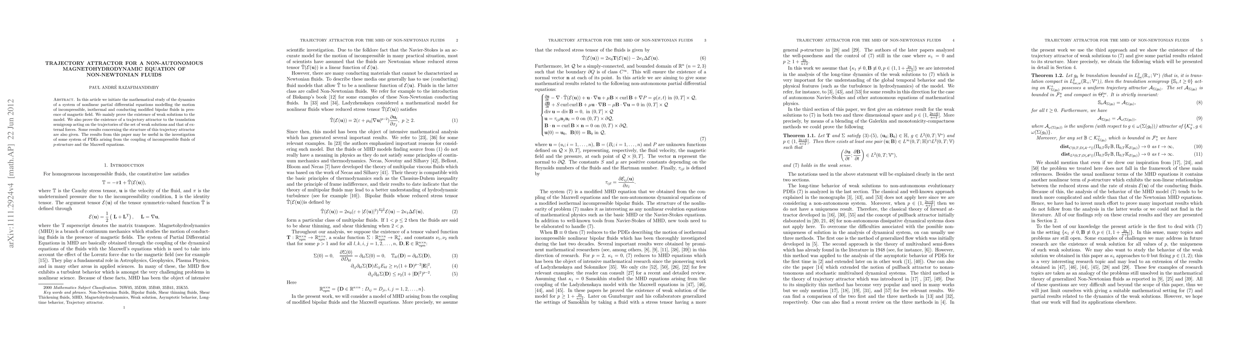 This paper mathematically studies the dynamics of non-autonomous magnetohydrodynamic equations for incompressible, isothermal, and conducting modified bipolar fluids under magnetic fields. It establishes the existence of weak solutions and a trajectory attractor, providing insights into the long-term behavior of the system.