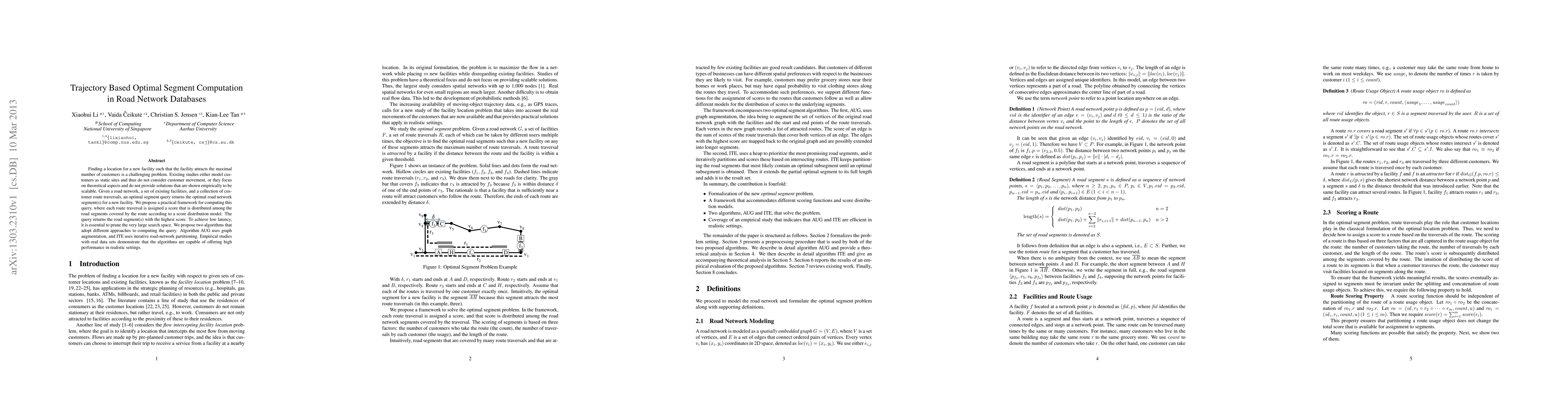 A new framework is proposed to find the optimal road segment for a new facility that attracts the most customers, using customer route traversals and score distribution models. Two algorithms are presented, one using graph augmentation and the other iterative road-network partitioning, which achieve high performance in realistic settings.