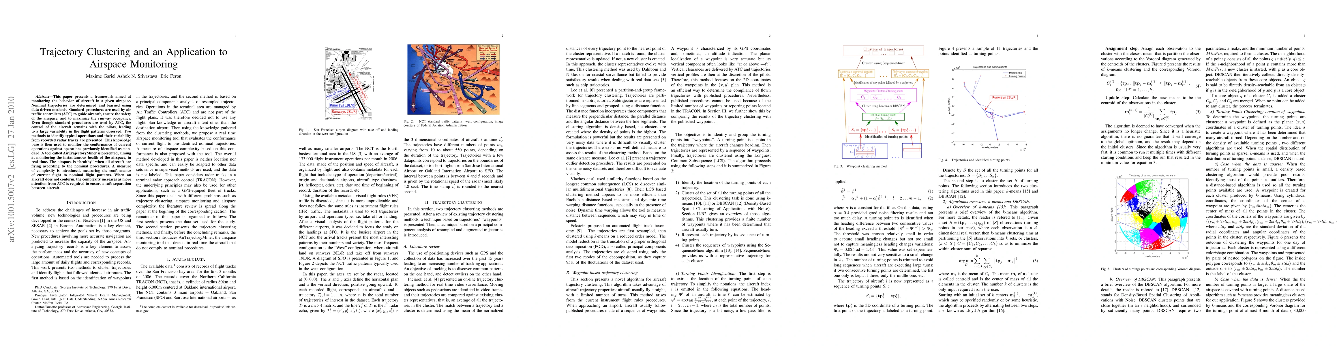 This paper presents a framework aimed at monitoring the behavior of aircraft in a given airspace. Nominal trajectories are determined and learned using data driven methods. Standard procedures are used by air traffic controllers (ATC) to guide aircraft, ensure the safety of the airspace, and to maximize the runway occupancy. Even though standard procedures are used by ATC, the control of the aircraft remains with the pilots, leading to a large variability in the flight patterns observed. Two methods to identify typical operations and their variability from recorded radar tracks are presented. This knowledge base is then used to monitor the conformance of current operations against operations previously identified as standard. A tool called AirTrajectoryMiner is presented, aiming at monitoring the instantaneous health of the airspace, in real time. The airspace is "healthy" when all aircraft are flying according to the nominal procedures. A measure of complexity is introduced, measuring the conformance of current flight to nominal flight patterns. When an aircraft does not conform, the complexity increases as more attention from ATC is required to ensure a safe separation between aircraft.