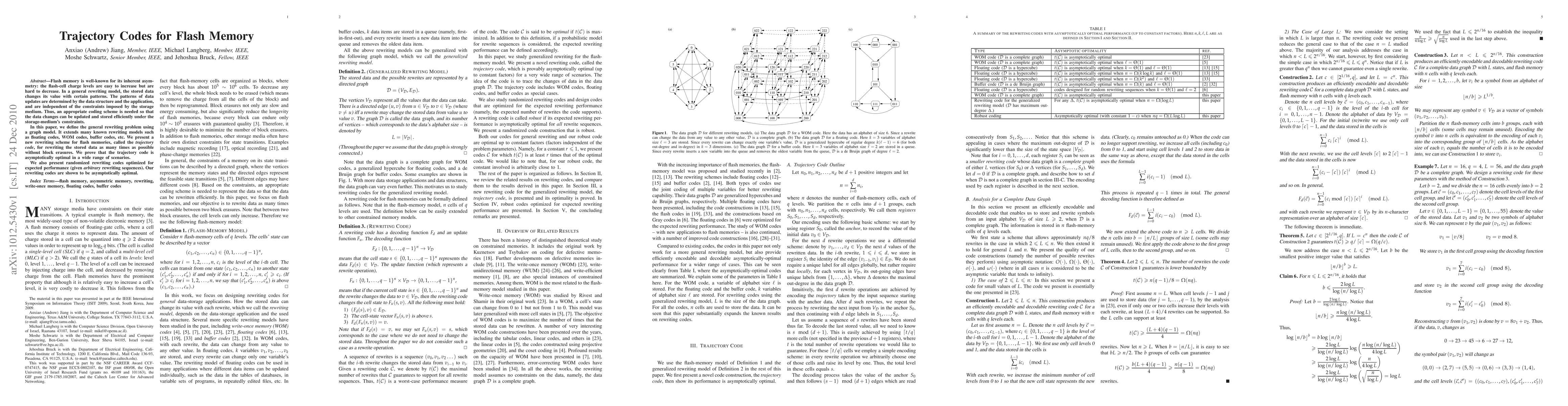 Flash memory is well-known for its inherent asymmetry: the flash-cell charge levels are easy to increase but are hard to decrease. In a general rewriting model, the stored data changes its value with certain patterns. The patterns of data updates are determined by the data structure and the application, and are independent of the constraints imposed by the storage medium. Thus, an appropriate coding scheme is needed so that the data changes can be updated and stored efficiently under the storage-medium's constraints. In this paper, we define the general rewriting problem using a graph model. It extends many known rewriting models such as floating codes, WOM codes, buffer codes, etc. We present a new rewriting scheme for flash memories, called the trajectory code, for rewriting the stored data as many times as possible without block erasures. We prove that the trajectory code is asymptotically optimal in a wide range of scenarios. We also present randomized rewriting codes optimized for expected performance (given arbitrary rewriting sequences). Our rewriting codes are shown to be asymptotically optimal.