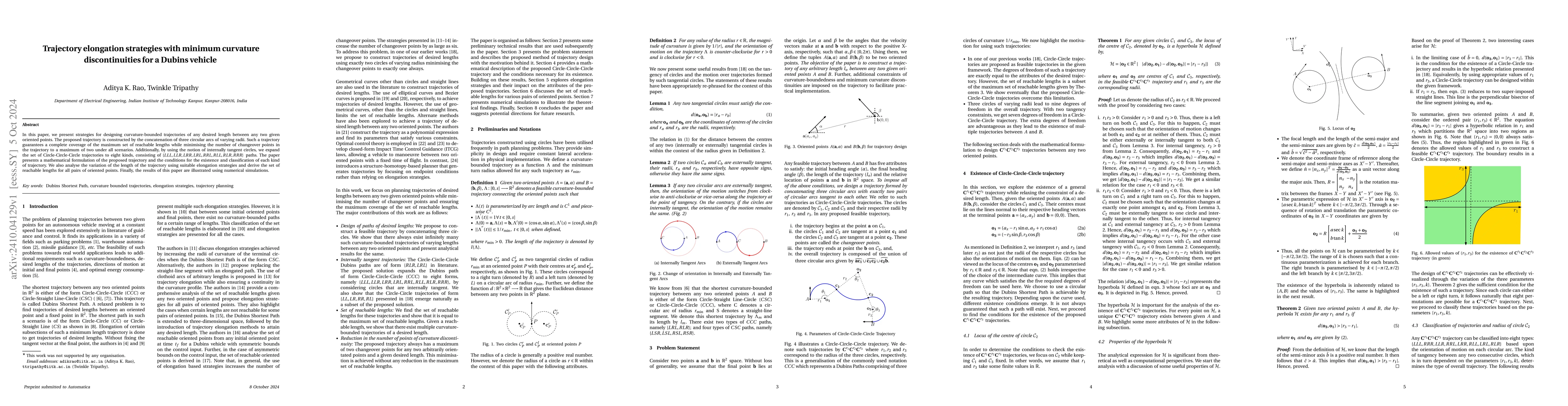 This paper proposes strategies for designing curvature-bounded trajectories for a Dubins vehicle using three circular arcs, minimizing curvature discontinuities and ensuring complete coverage of reachable lengths. It expands the trajectory types to eight kinds and presents a mathematical formulation for trajectory classification and elongation strategies, supported by numerical simulations.