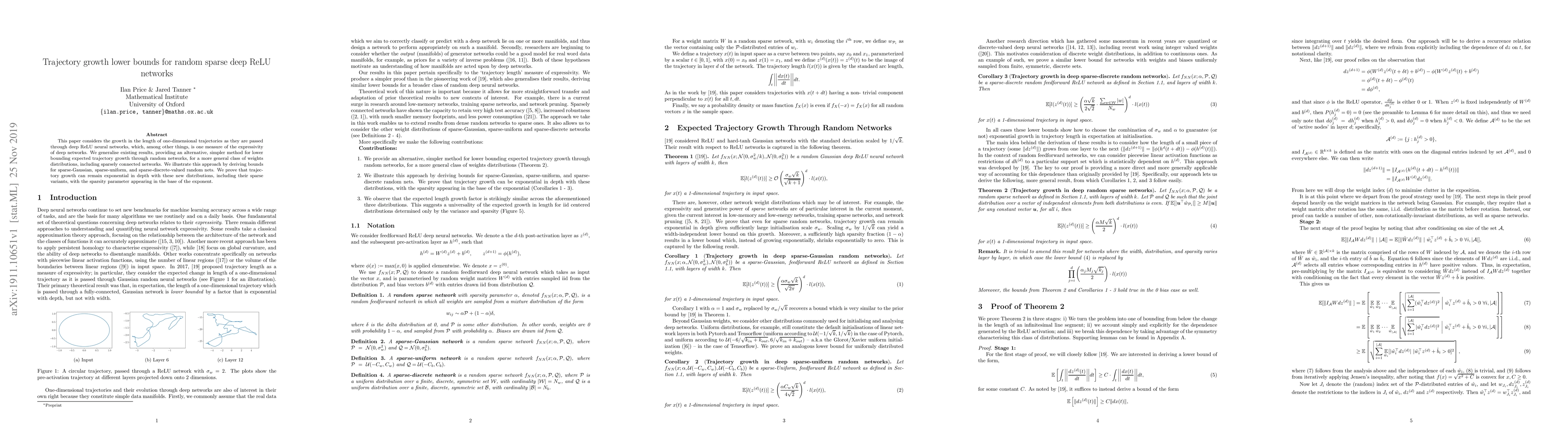 This paper establishes lower bounds for the growth of one-dimensional trajectories in deep ReLU networks, showing that exponential growth in depth can persist even for sparse-connected random networks. It provides a simpler method for deriving these bounds across a variety of sparse weight distributions.